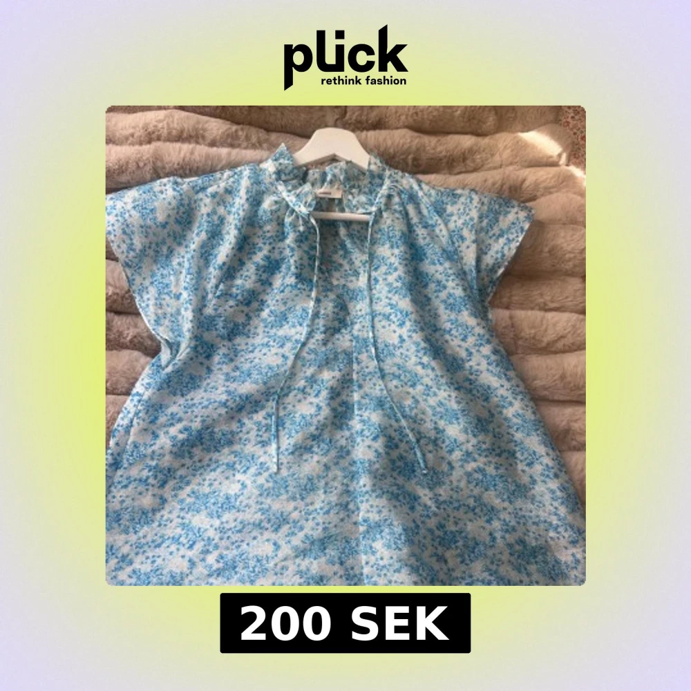 Supersöt blus från Samsøe Samsøe med ljusblått blommigt mönster på vit botten. Blusen har korta ärmar, knytband vid halsen och en loose passform. Materialet har en lätt glansig yta som ger en fräsch vibe. Perfekt för varma dagar!💙🤍