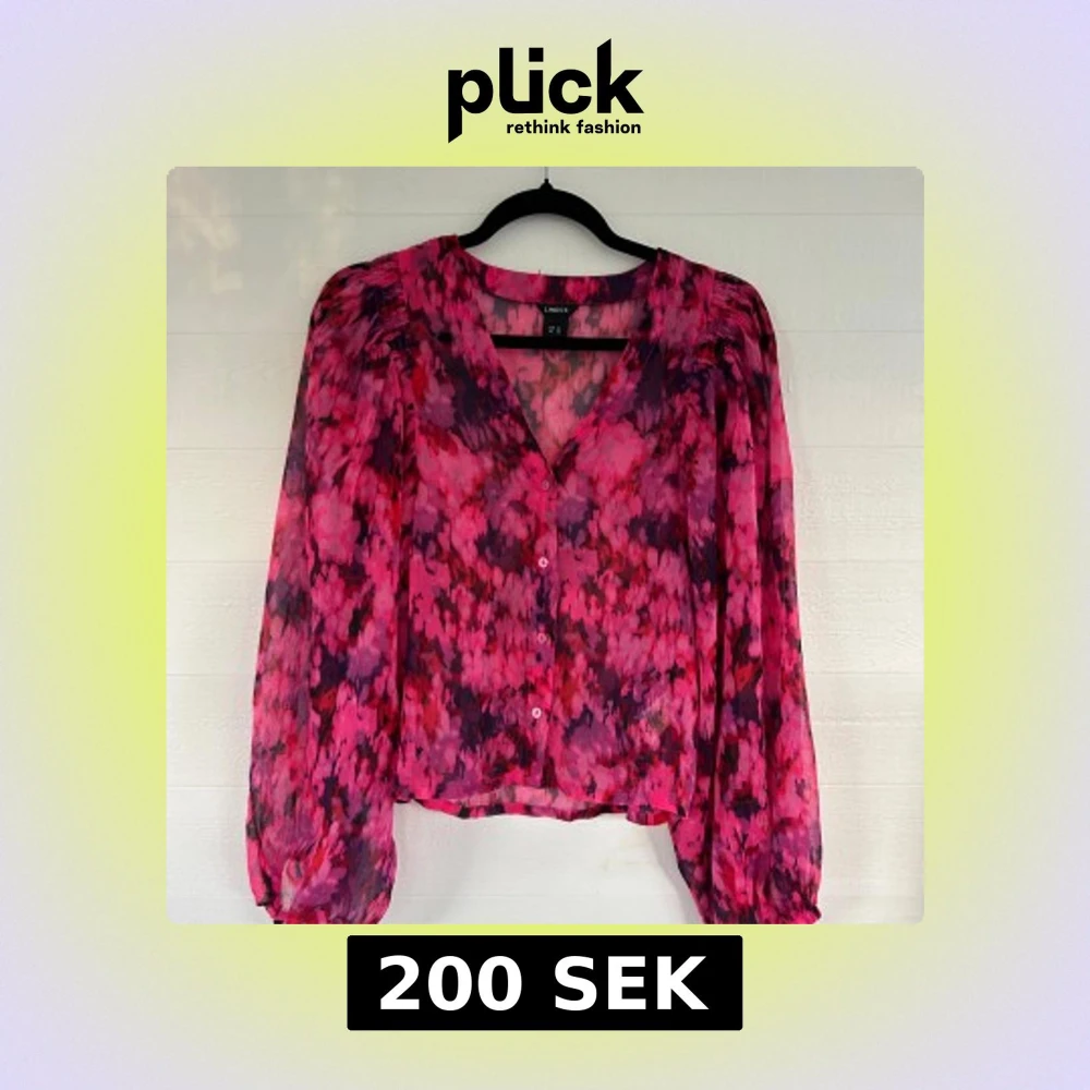 Snygg blommig blus från Lindex i transparent material. Färgerna går i rosa, lila och rött med v-ringning, knappar framtill och långa puffärmar. Perfekt för dig som vill sticka ut med färg och mönster.🤩💕