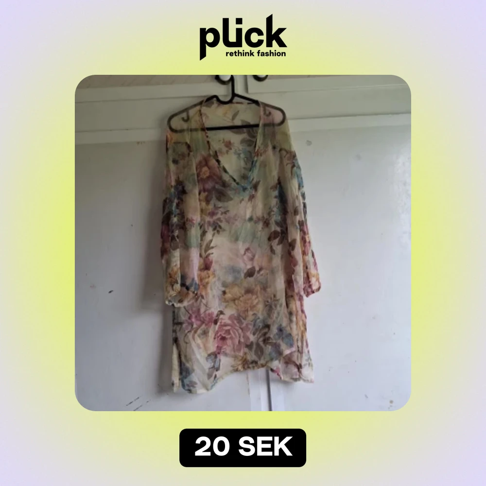 Säljer en superfin blommig tunika med v-ringning. Den är i ett tunt och luftigt material, perfekt för varma sommardagar. Tunikan har långa ärmar och ett löst passande snitt som gör den bekväm att bära. Färgerna går i ljusa toner med inslag av rosa, blått och grönt. Perfekt för en sommarfest eller en dag på stranden!