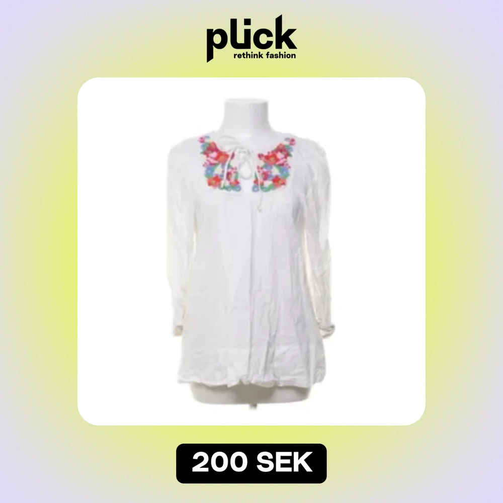 Söt somrig vit blus med blommiga detaljer, i nyskick