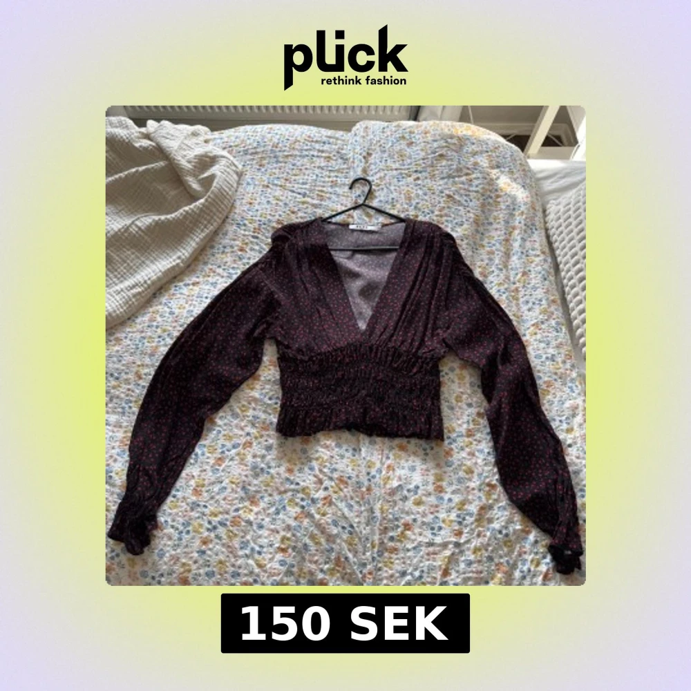 Jättesöt blommig kort blus med djup v-ringning! Skönt luftigt material. Scrunch i axlar och midja/mage. Endast använd 1 gång. 10/10 i skick. Skicka prisförslag!