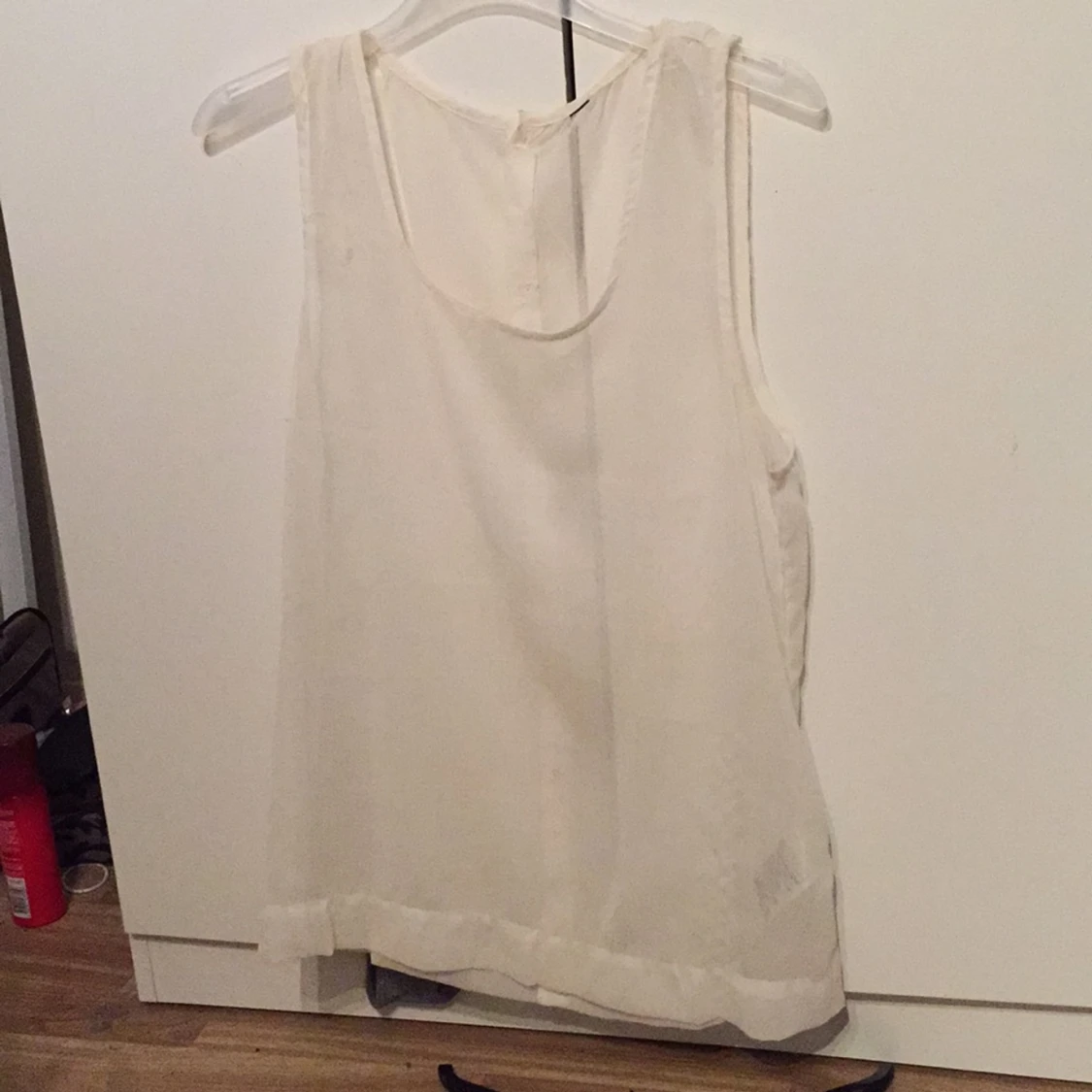 Genomskinlig vit tröja med knappar hela baksida, använd endast ett fåtal gånger. Köpt från Vera Moda i strl M 50kr + frakt (Kan få paketpris vid fler köp av mina kläder)