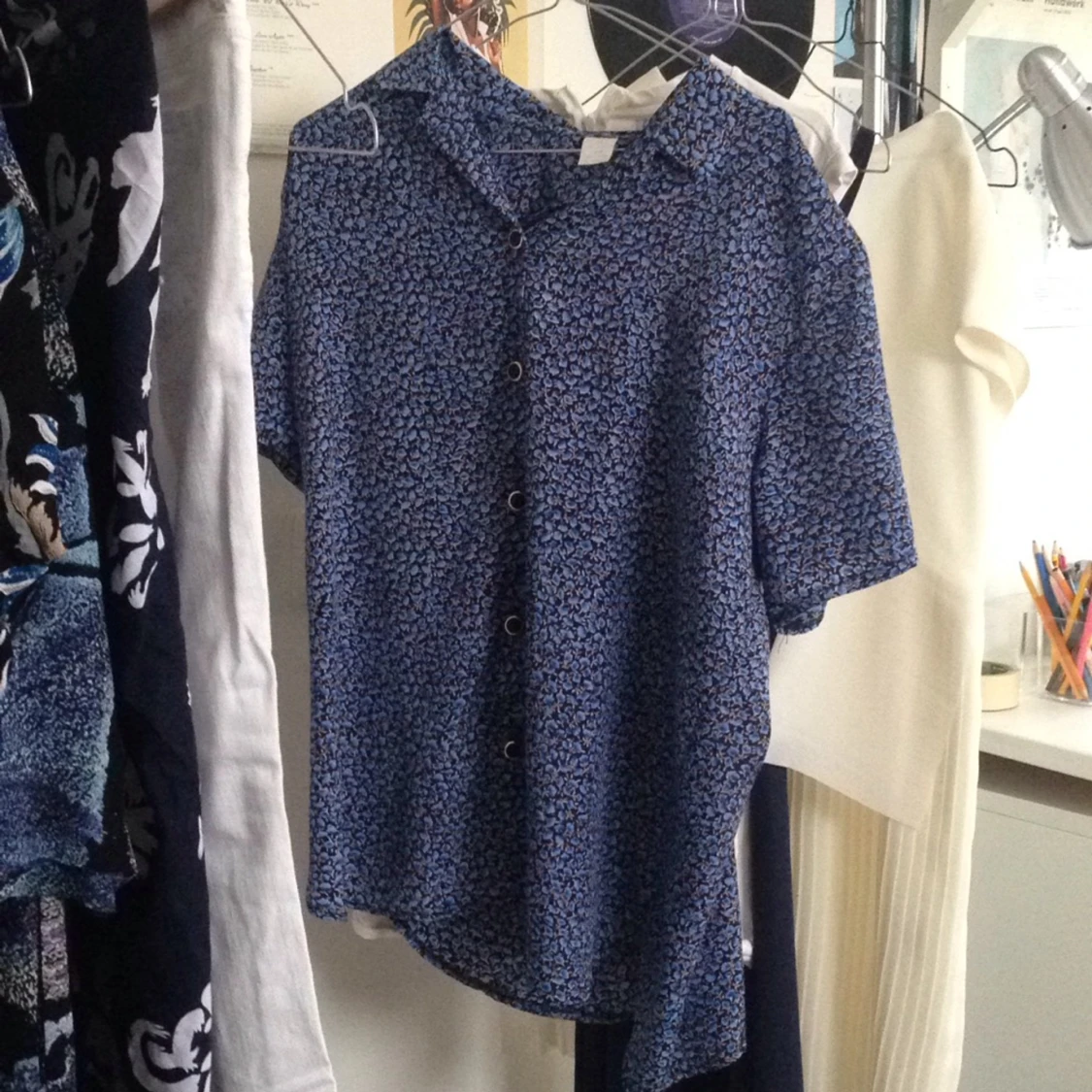 Supersuper fin blus i fint blått mönster som jag köpte i en second hand i Milano. Jag har använt blusen ca två gånger och jag har small, men då den lite mer oversize.