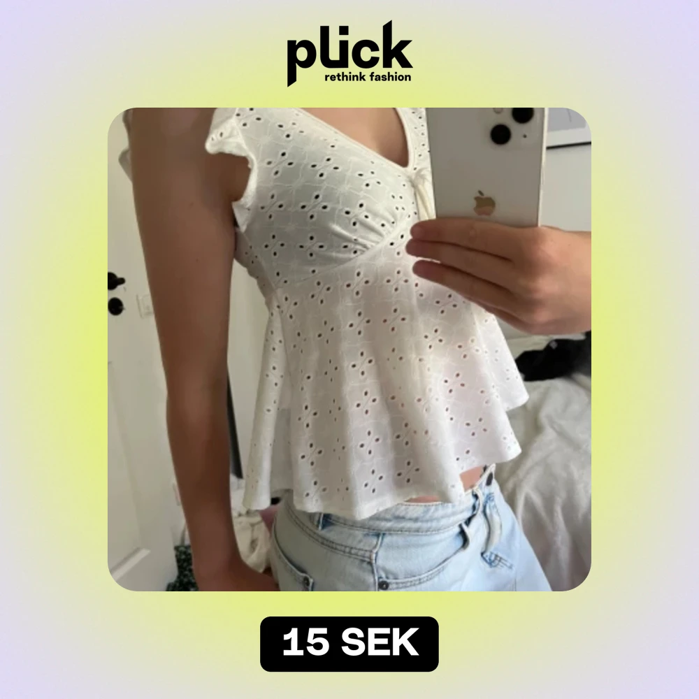 En fin vit kort blus som har fint mönster med fina hĂ„l i. sĂ€ljer dĂ„ den börjar snart bli för liten för min och kommer inte till andvĂ€ndning sĂ„ jĂ€tte mycket đ