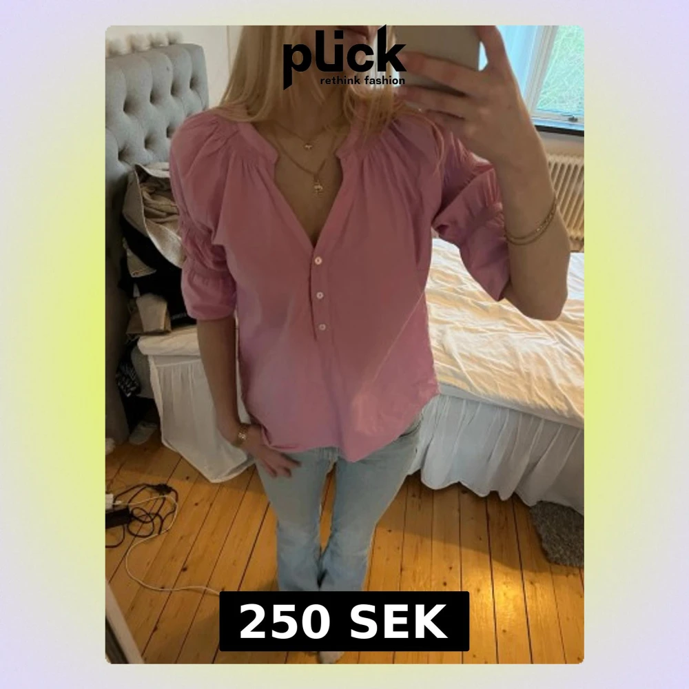 Jättefin rosa blus med puffärmar, älskar!🩷