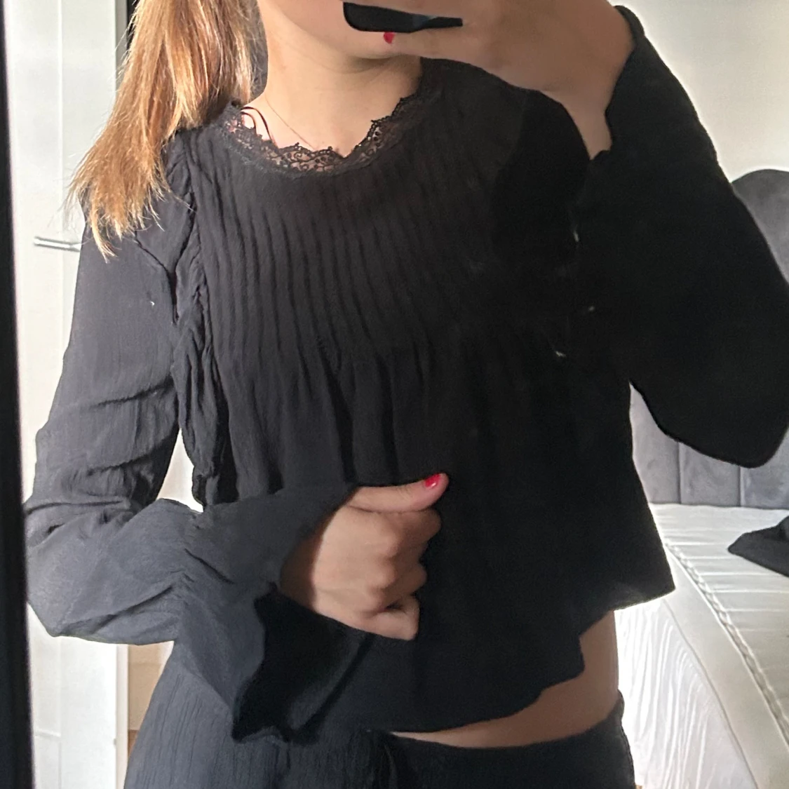 Säljer denna söta blus från zara som tyvärr blivit för liten!!