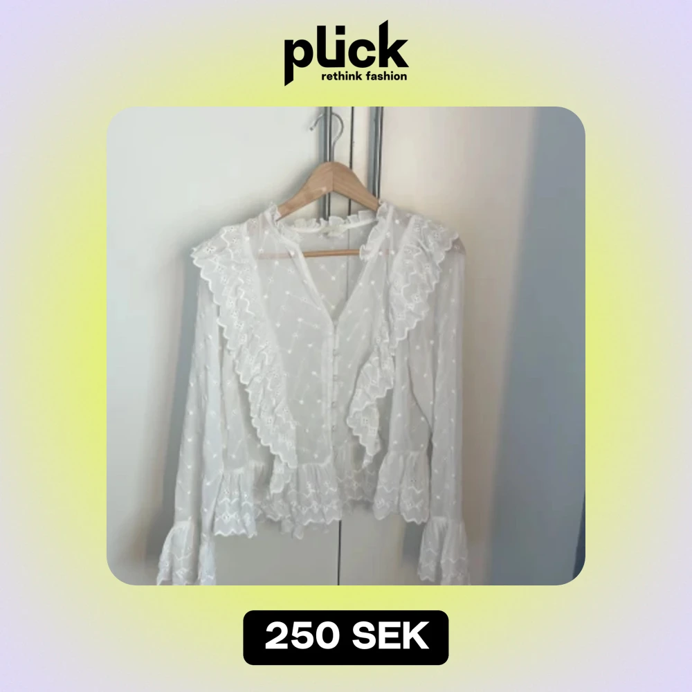 Säljer denna vita blus som är i storlek 44 men som jag skulle säga sitter som en M, jätte fint skick!