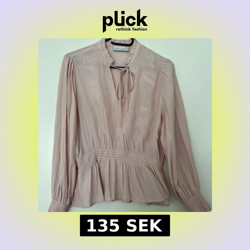 Ljusrosa blus med långa ärmar och smockdetaljer i midjan och vid ärmslut, från 365 (MQ) i storlek S. Blusen har en liten krage och en v-formad öppning med knytband. Färgen är rosa. 100% viskos. I mycket fint skick. Mått: Längd ca 60 cm Byst ca 48 cm Midja ca 34-55 cm (elastisk) Ärmlängd mätt från axeln ca 57 cm Axelmått ca 40 cm