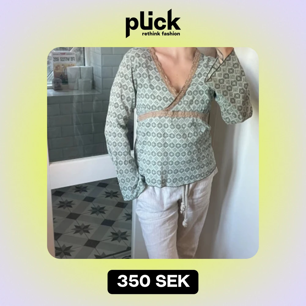 Gulligaste långärmade blusen, vintage Indiska! Den är ljust turkos med ljusrosa kanter. Otroligt fin💞