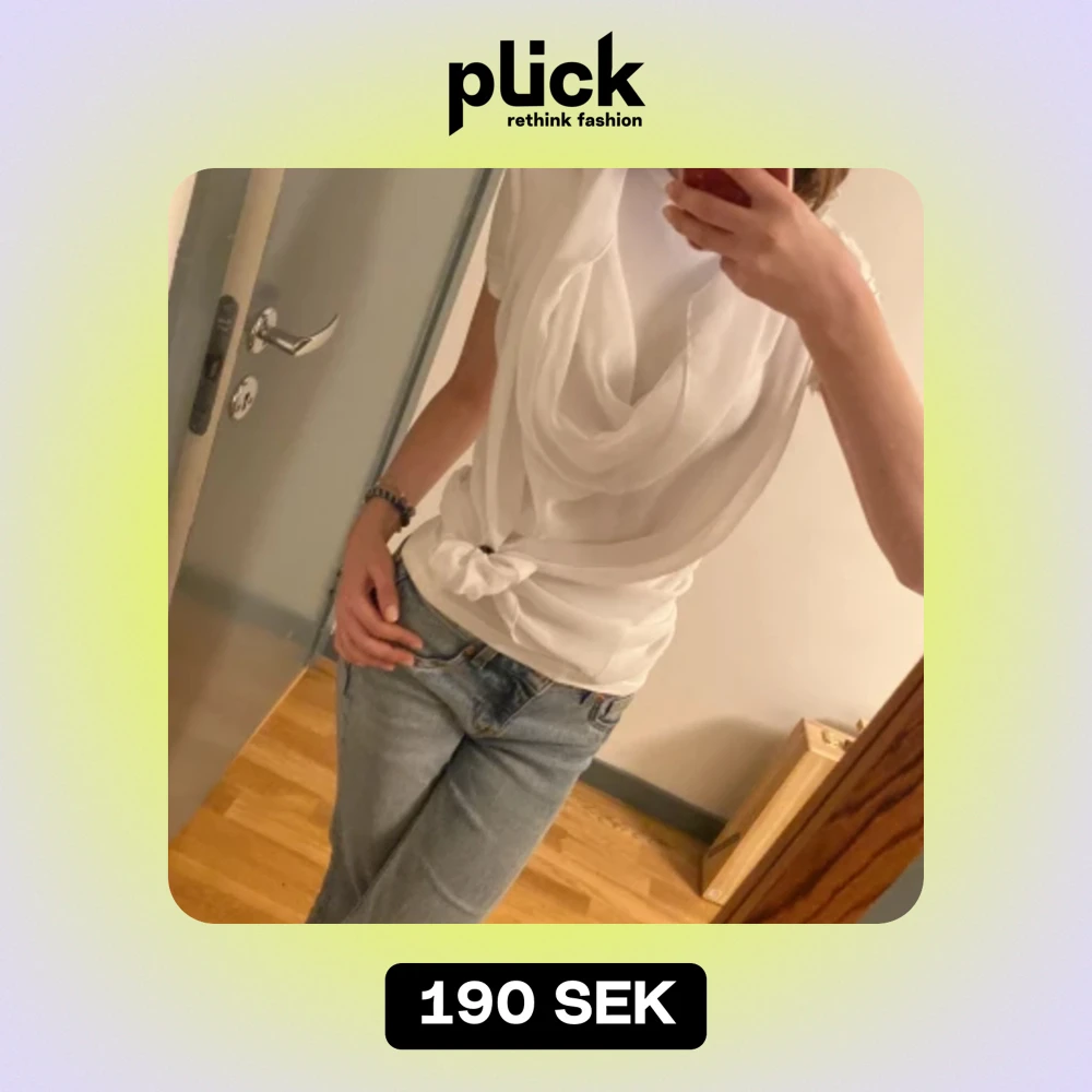SĂ„ gullig blus man kan ta pĂ„ över en annan tröja dĂ„ den i sig Ă€r lite genomskinlig. Den Ă€r lĂ„ng sĂ„ jag har knutit upp den som man kan seđ StĂ„r ingen storlek men uppskattar att den Ă€r en Sđ«¶đŒ