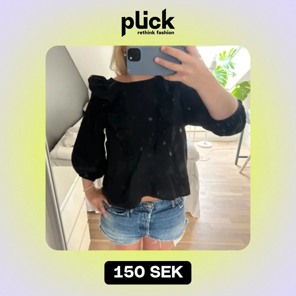 så fin svart blus perfekt till finare tillfällen! Använd och köpt för ca ett år sedan. älskar den men måste sälja då den börjar bli lite liten
