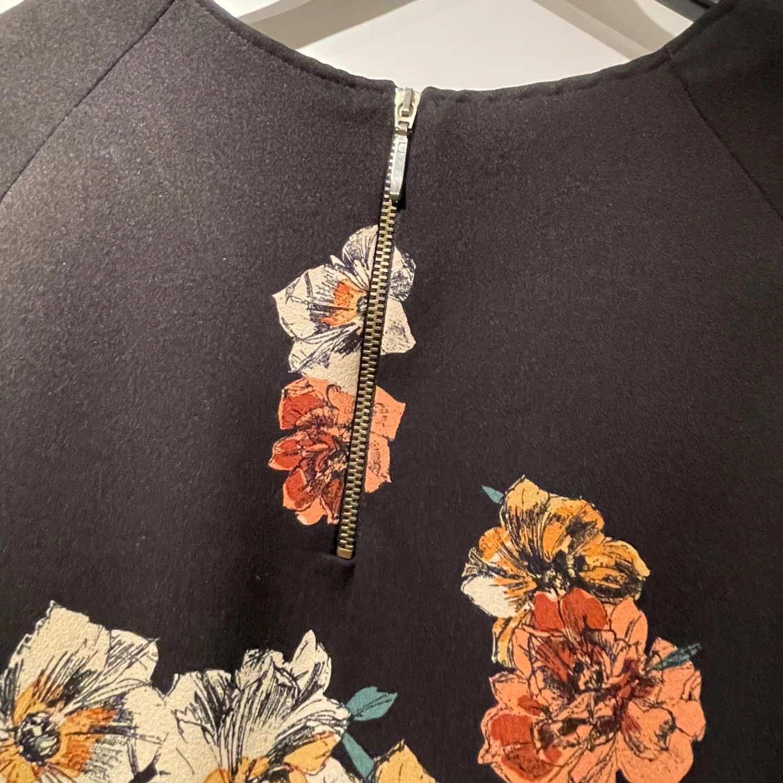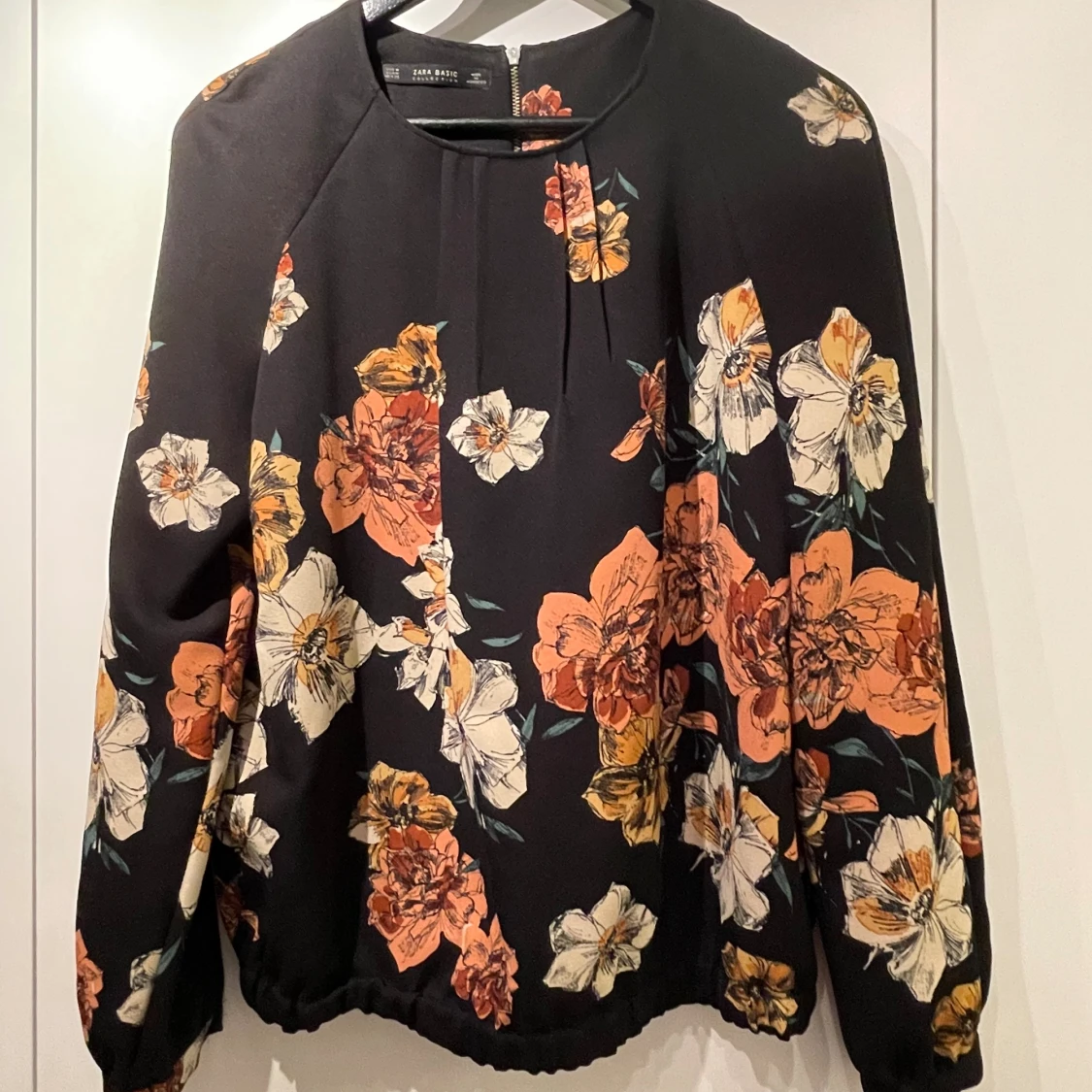 Snygg blus med resår nedtill. Dragkedja baktill.