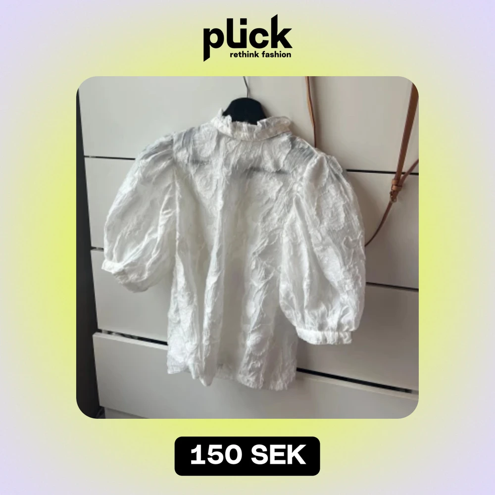 JĂ€tte fin vit blus med blommor frĂ„n hm anvĂ€nd ca 7 gĂ„nger đ