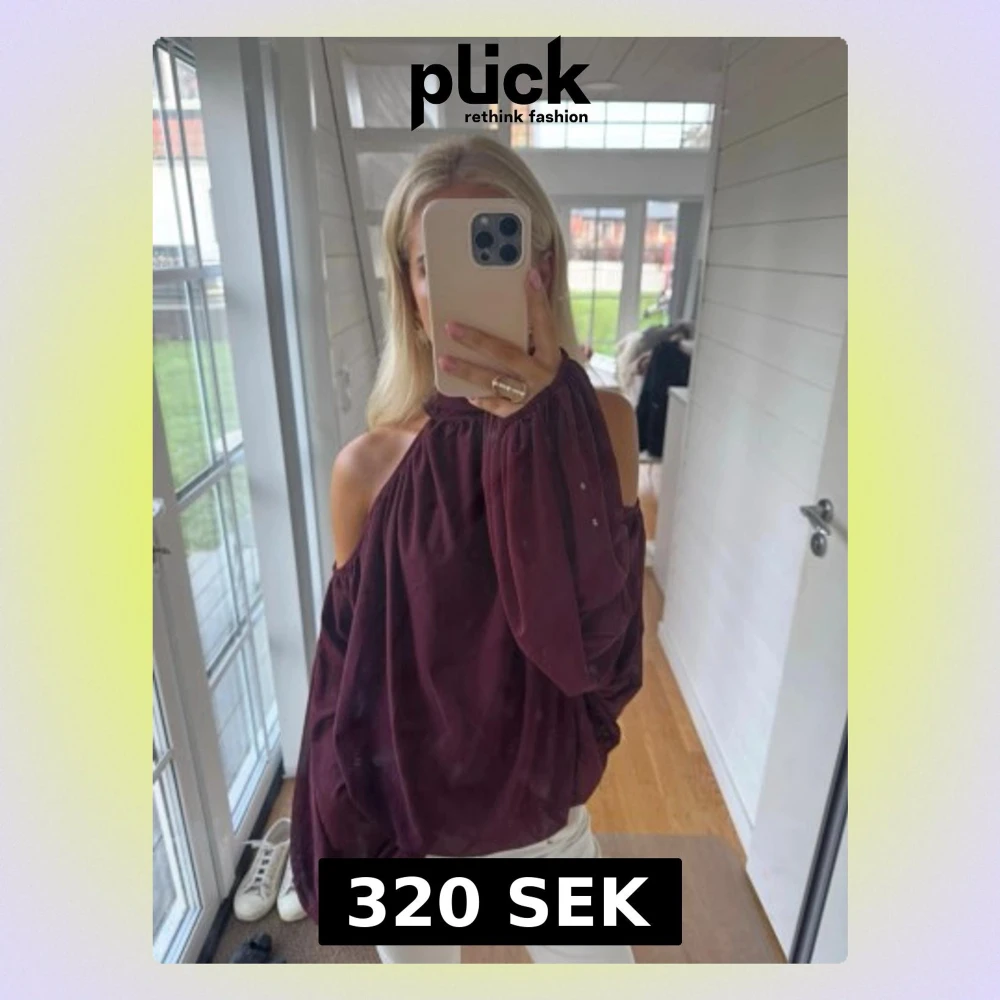 Såå snygg vinröd blus med cut out / öppna axlar från Gina tricot. Använd en gång. Nypris 460kr. Storlek s, jag på bilderna brukar ha xs så passar båda