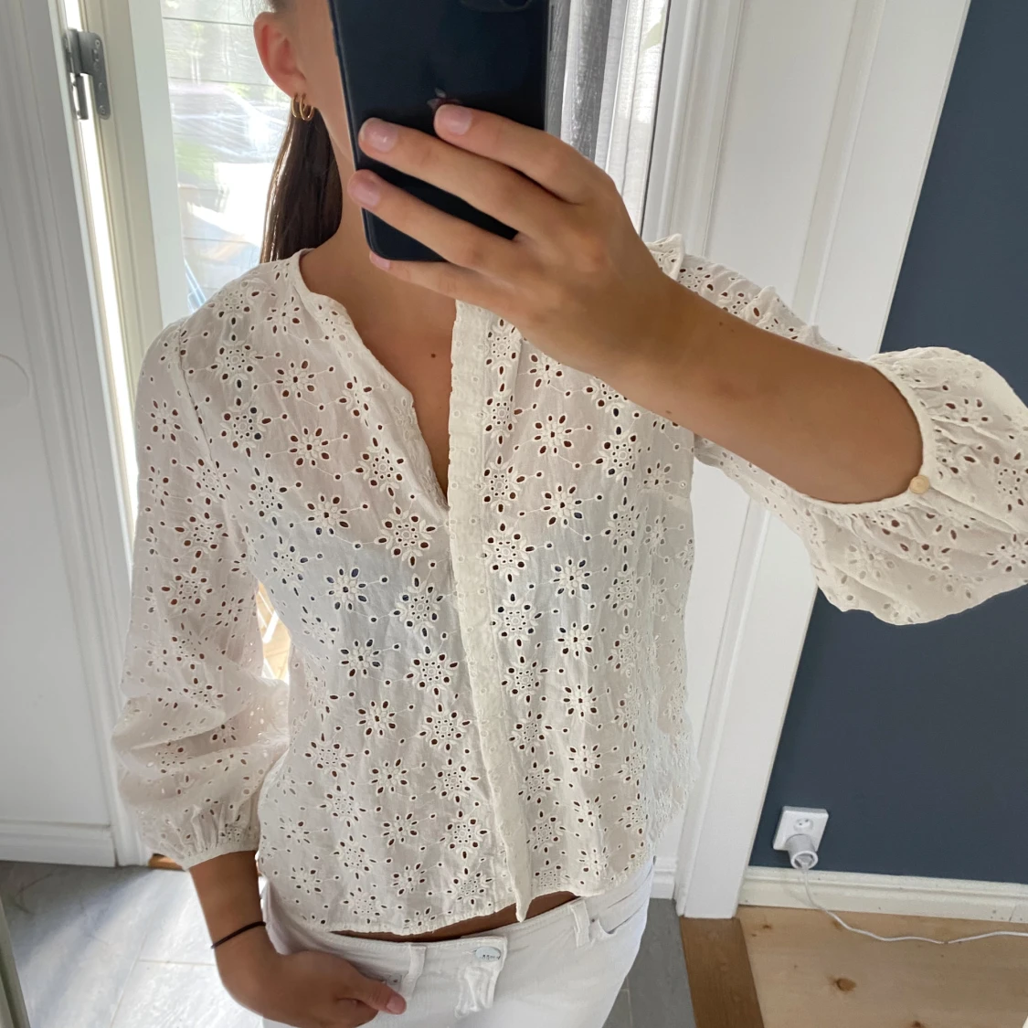En söt blus i mycket fint skick. Ifrån Lindex i storlek XS men skulle säga att den passar en S