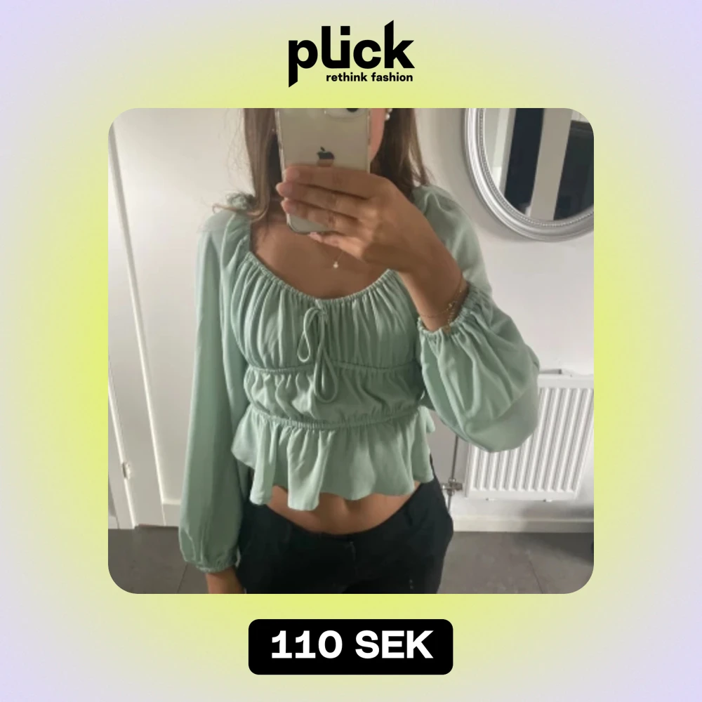 Jättefin ljusgrön volangblus! Använd fåtal gånger och har blivit för liten så den är i väldigt bra skick💓köparen står för frakten!