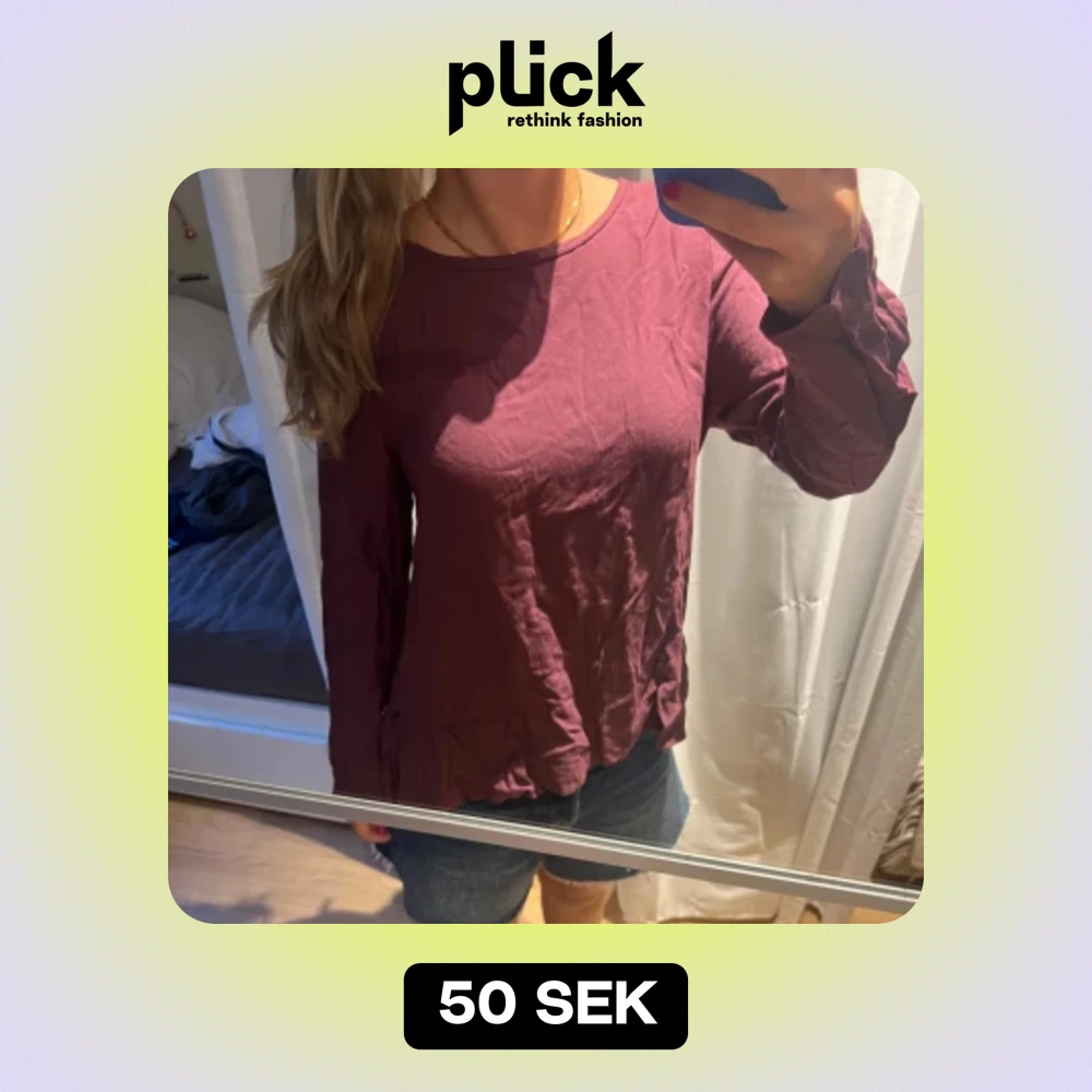 Vinröd blus/tröja med volanger nertill. Passar till vardags samt att klä upp. Kommer ej till användning.