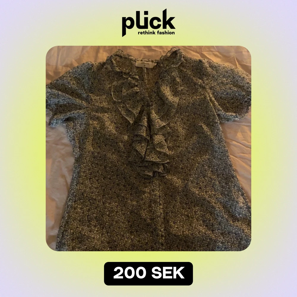 Blå,vit blus med volanger vid bröstet. Aldrig använd, inga defekter! ❌pris går alltid att diskutera❌