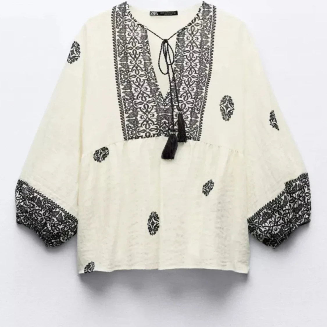 En fin blus från Zara som är knappt använd för jag köpte fel storlek och den är som ny, passar S oxå