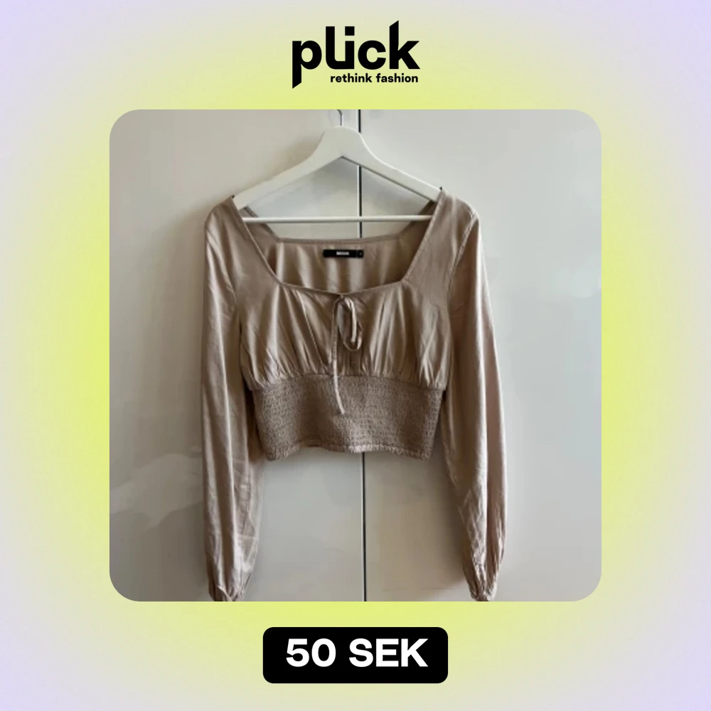 Beige blus från bikbok med ballongärmar och åtsittande midja. I fint skick