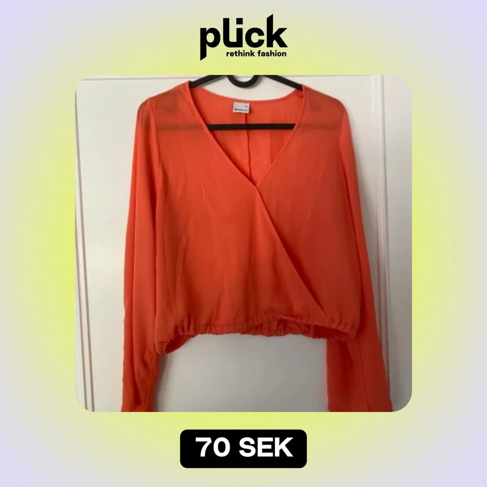 En jättefin långärmad blus i korallorange. Storlek M men passar även som S