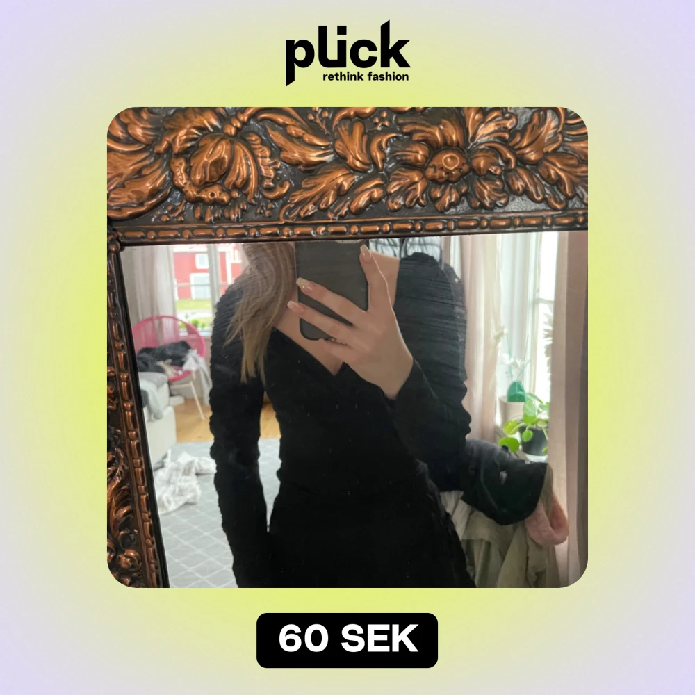 Säljer en elegant svart topp med rynkade detaljer. Toppen har en figurnära passform och långa ärmar, Materialet känns mjukt och bekvämt mot huden.🖤🖤