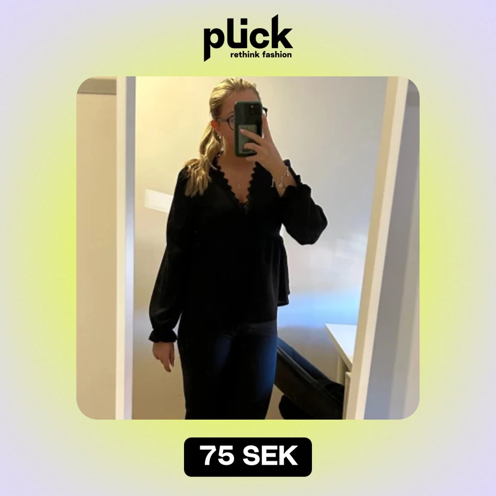 Väldigt fin blus i tunt material. Säljs pga för liten över bysten.