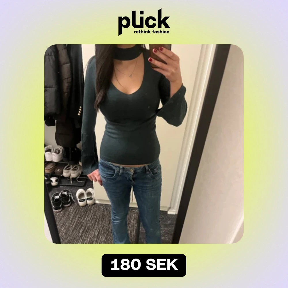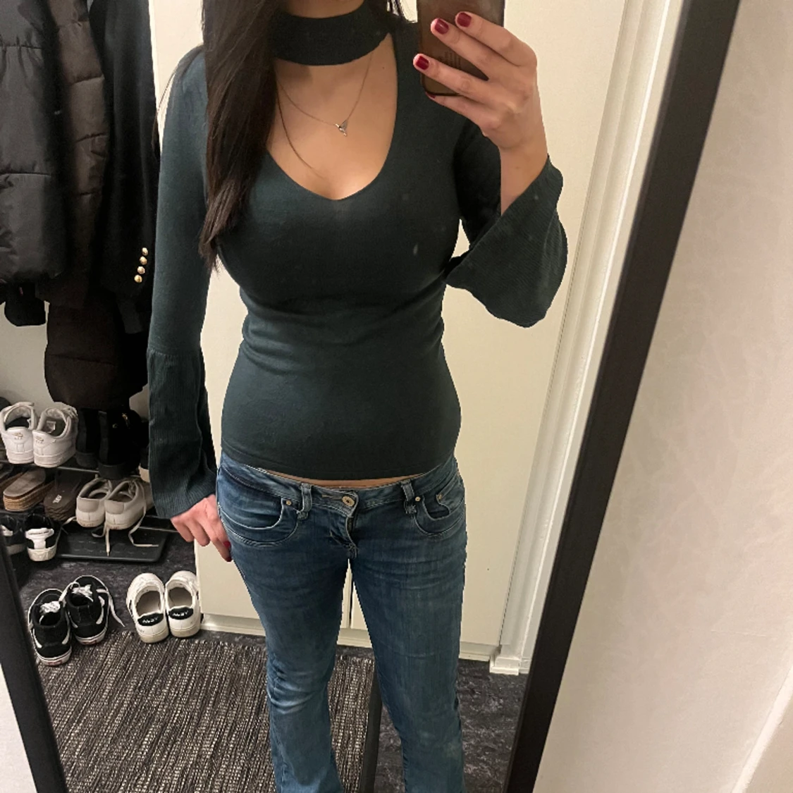 Jättefin mörkgrön tröja med choker och flare ärmar! Har likadan i svart🥰💗