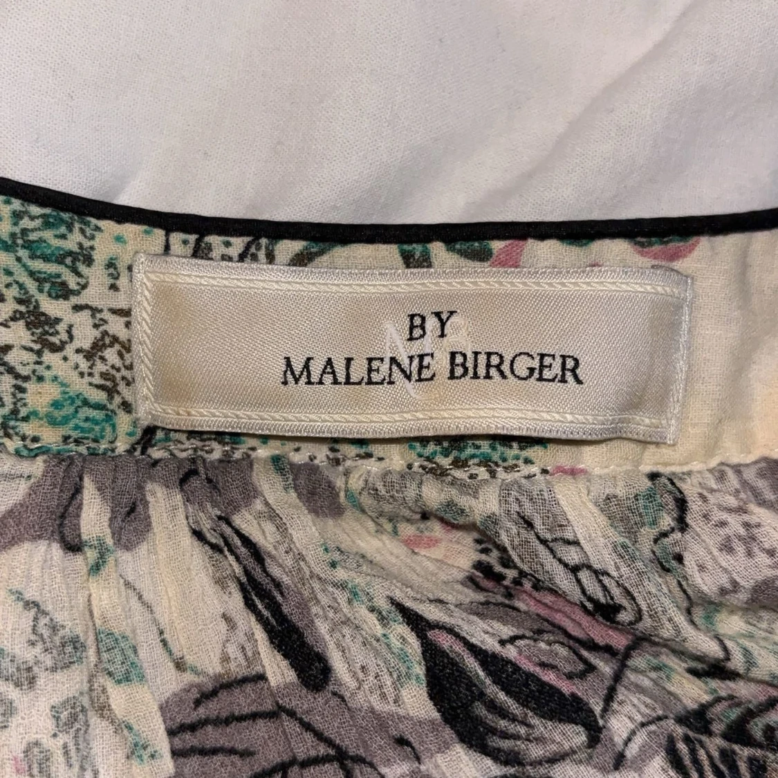 En blus ifrån By Malene Birger. Andvänd en gång och säljer då den inte kommit till andvänding. Blusen är i storlek 36 och har en v-ringad design och knytband i midjan💞