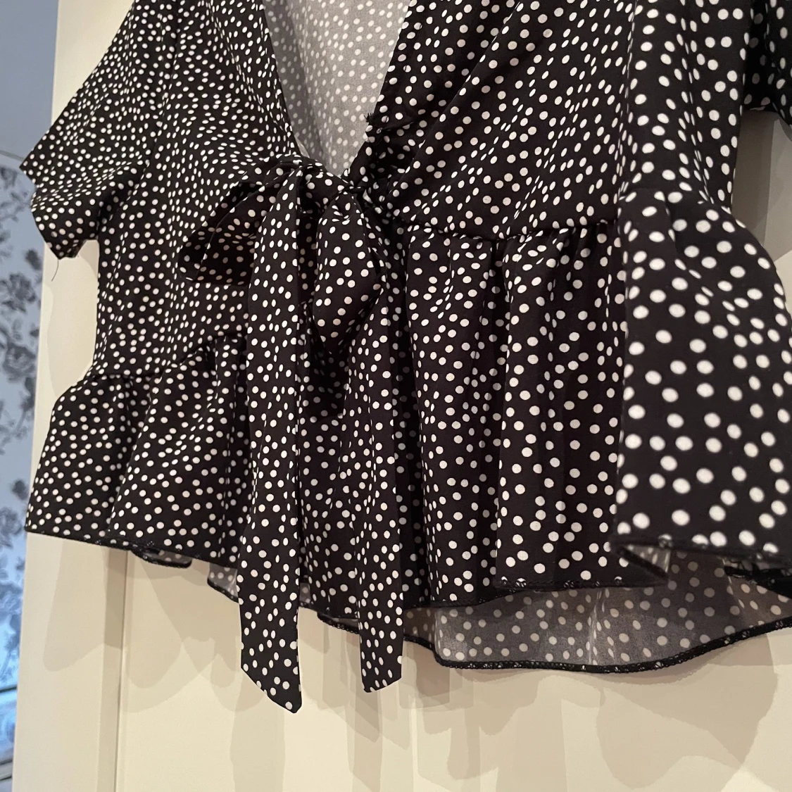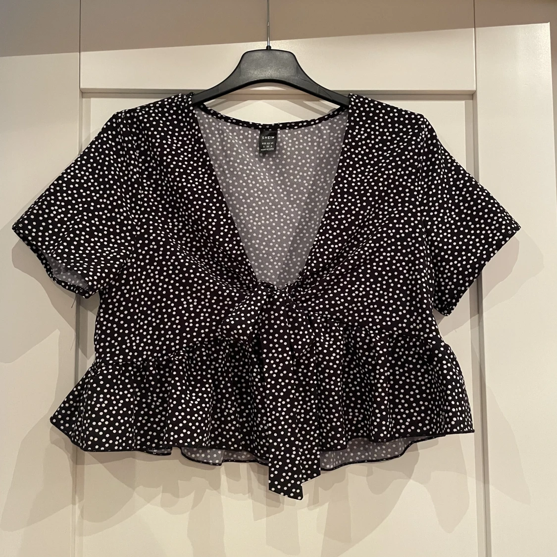 Lite oversized pga den är bredare i modellen så även om den är croppad upplevs den inte som super kort. Aldrig använd