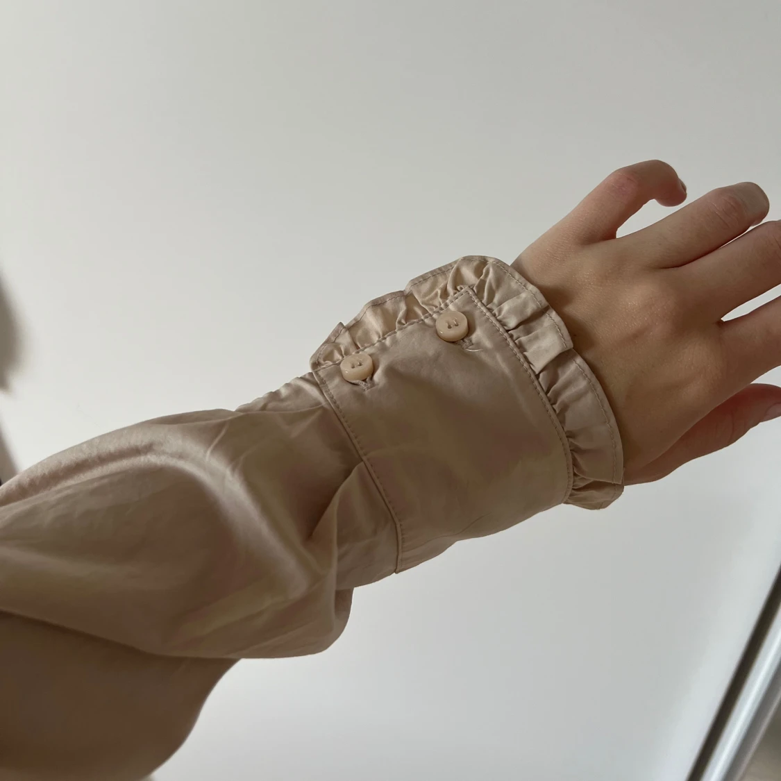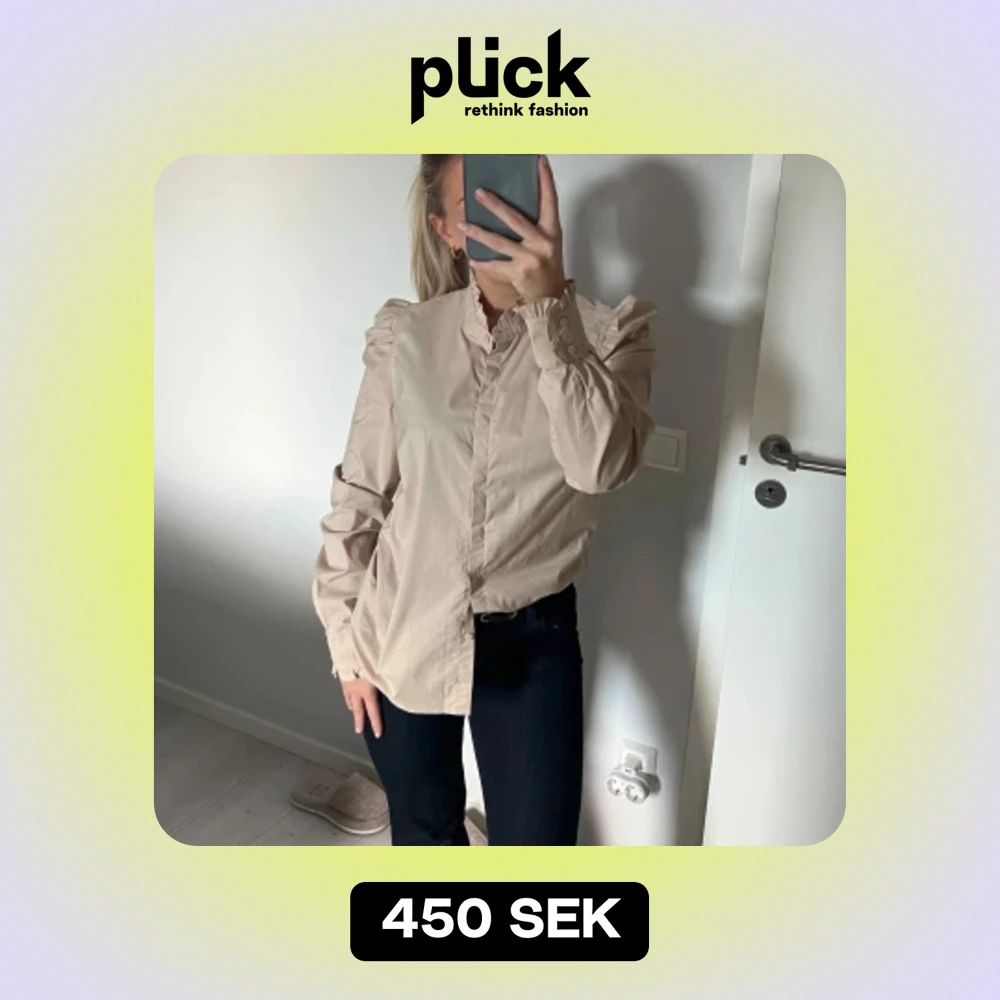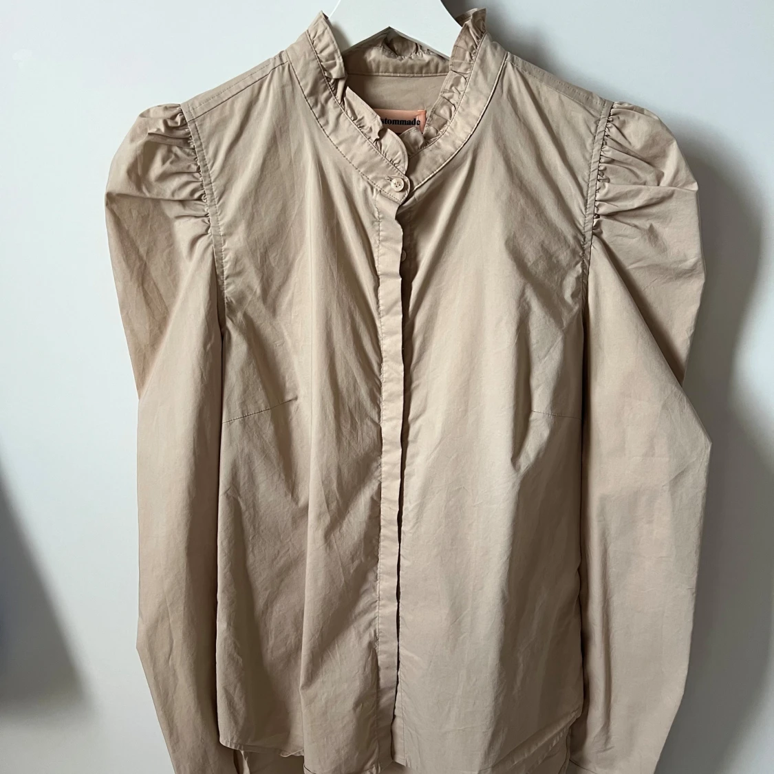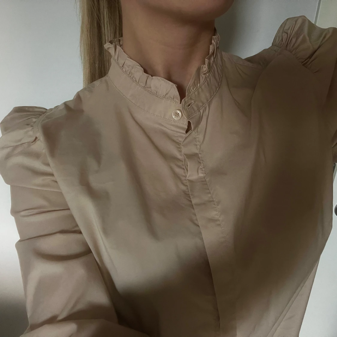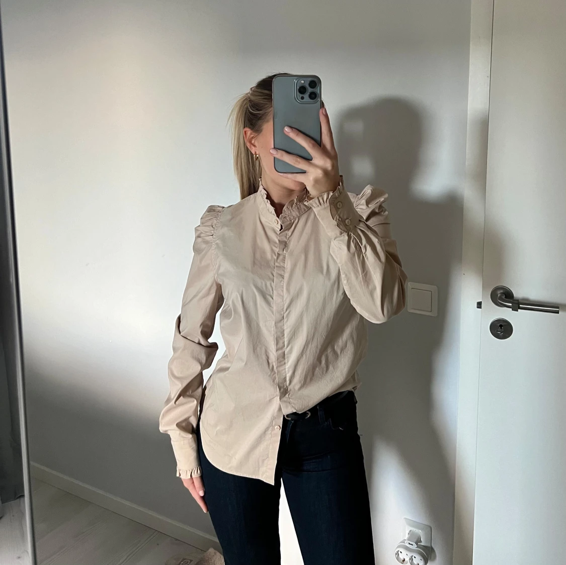 Beige blus från Custommade, väldigt fint skick & utan några som helst defekter. Ärmarna är så fina & även axlarna som har lite volym på sig. Storlek 36/38 - normal i storleken.