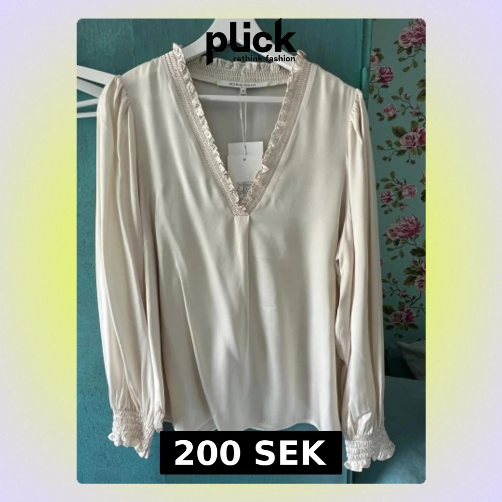 Krämfärgad blus från Second Female. Storlek M. Aldrig använd, med prislappar kvar.