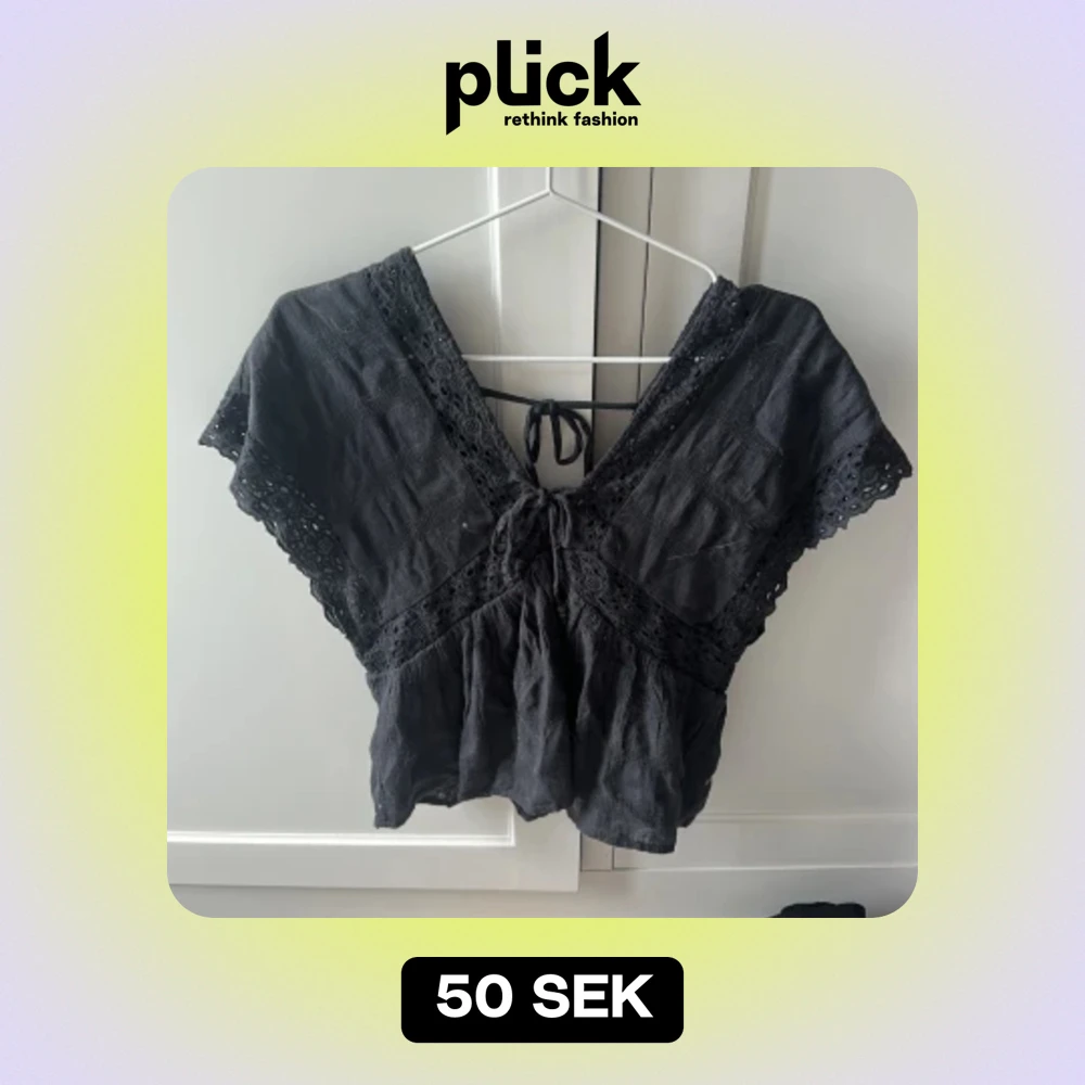 Blus i marinblå får american eagel. Går att knyta både fram och bak. Många detaljer och även broderat/spets på kanten