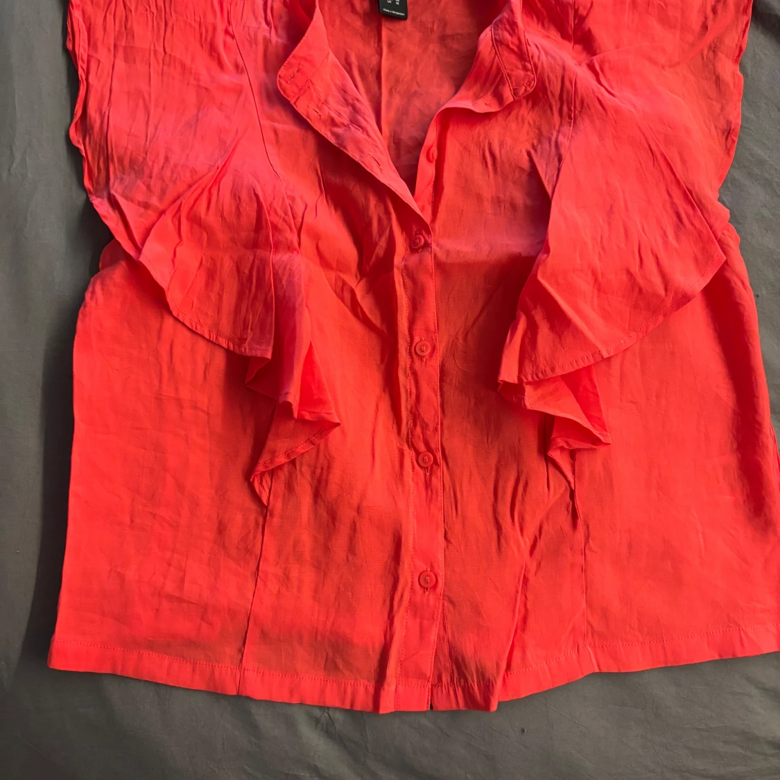 Fin tunn blus med volang i sidorna. Knappar fram. Storlek 44.
