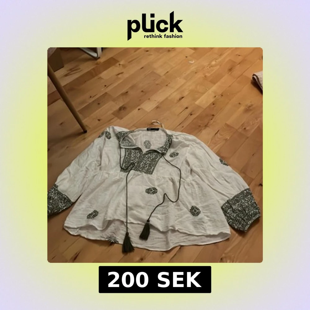 Säljer en vit och grön blus från Zara! Pärlorna på ena snöret har åkt av. Hör av er om ni undrar något!🫶🏻