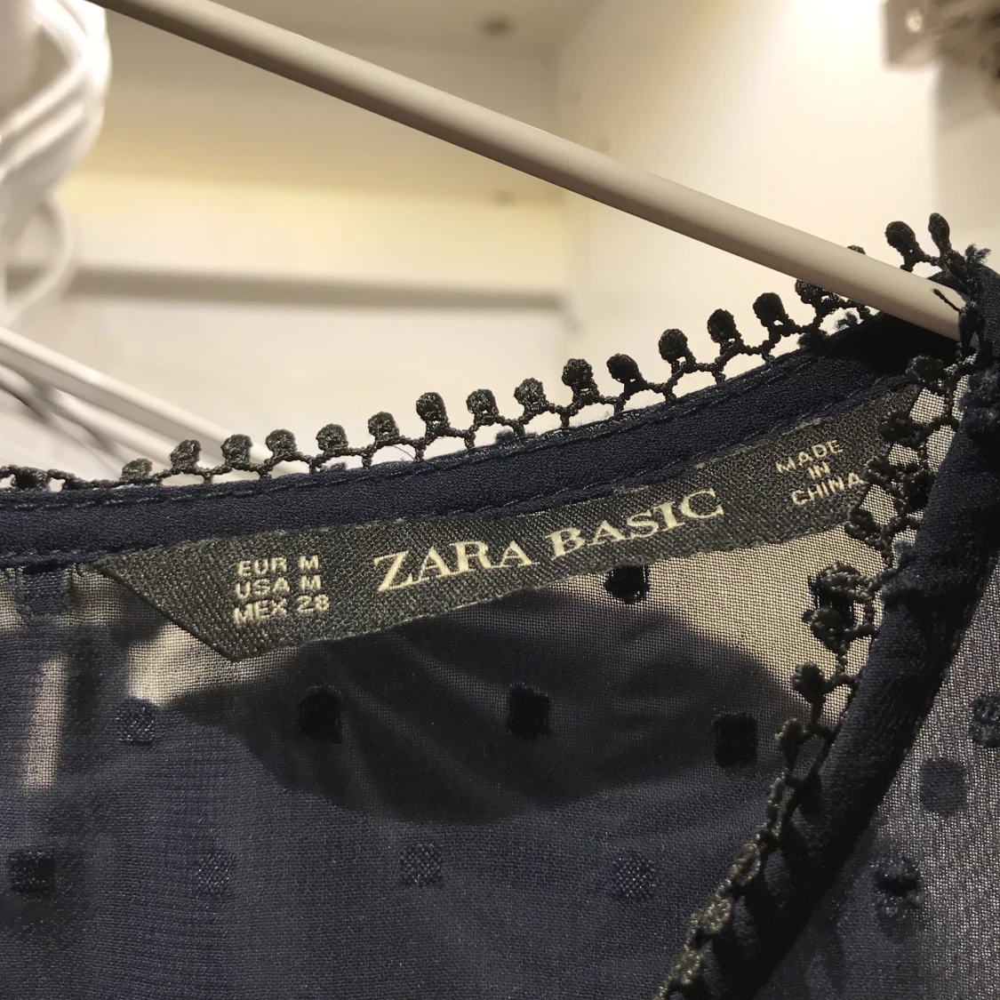 Marinblå blus från Zara i storlek M. Sparsamt använd. Nypris: 249kr. Kan både posta och mötas upp!