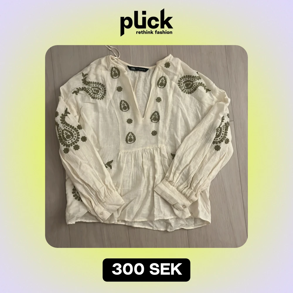 Intressekonflikt på min sjukt söta blus från zara, köpte sommaren 2023 och använd typ 3 gånger så ser helt ny ut! Tror det är liknande linnetyg typ med gröna broderier❤️