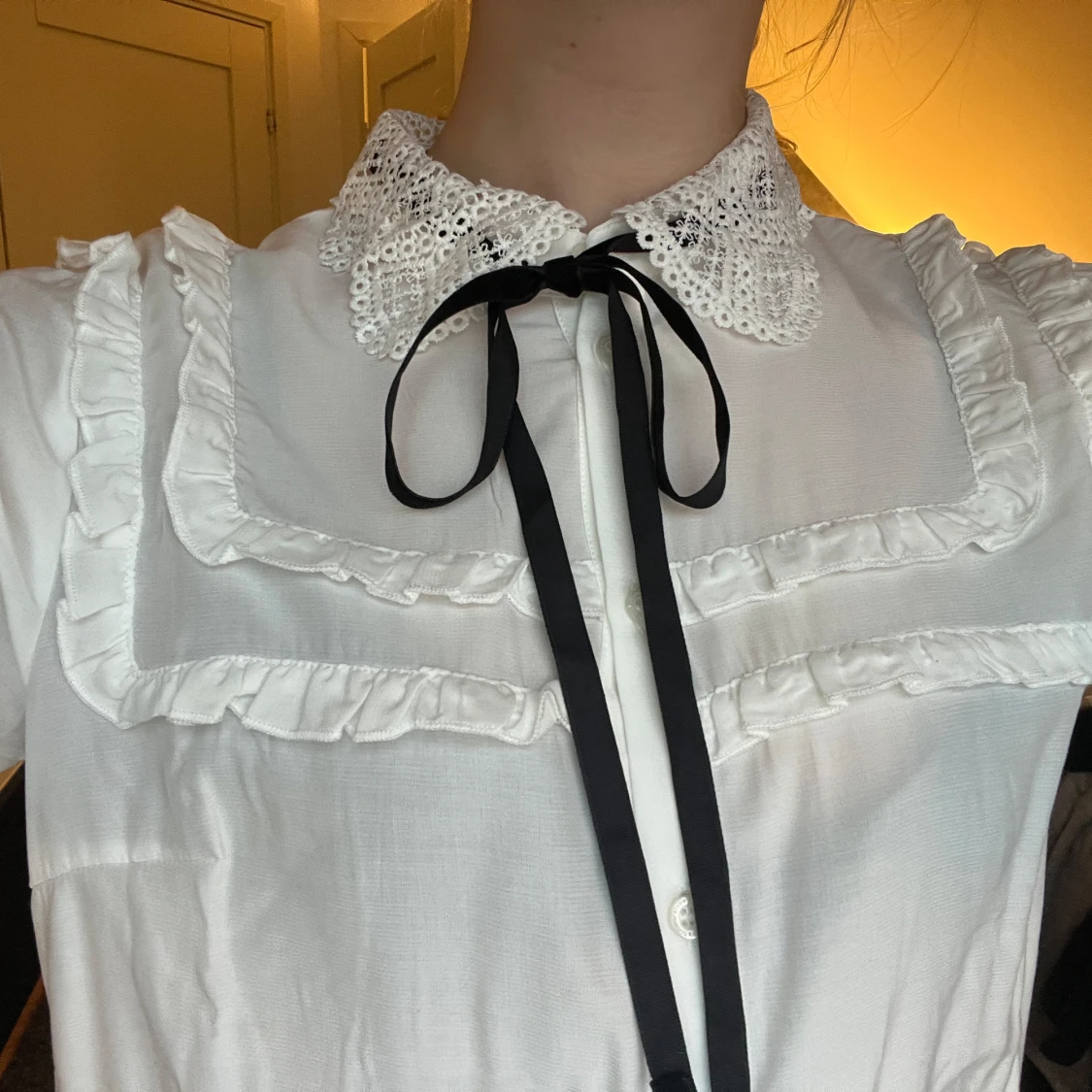 en blus från lindex, oanvänd och prislapp kvar. supervacker skjorta med små detaljer på, finns samt ett svart snöre runt kragen son går att ta av.❤️ pris får att diskutera 🌸