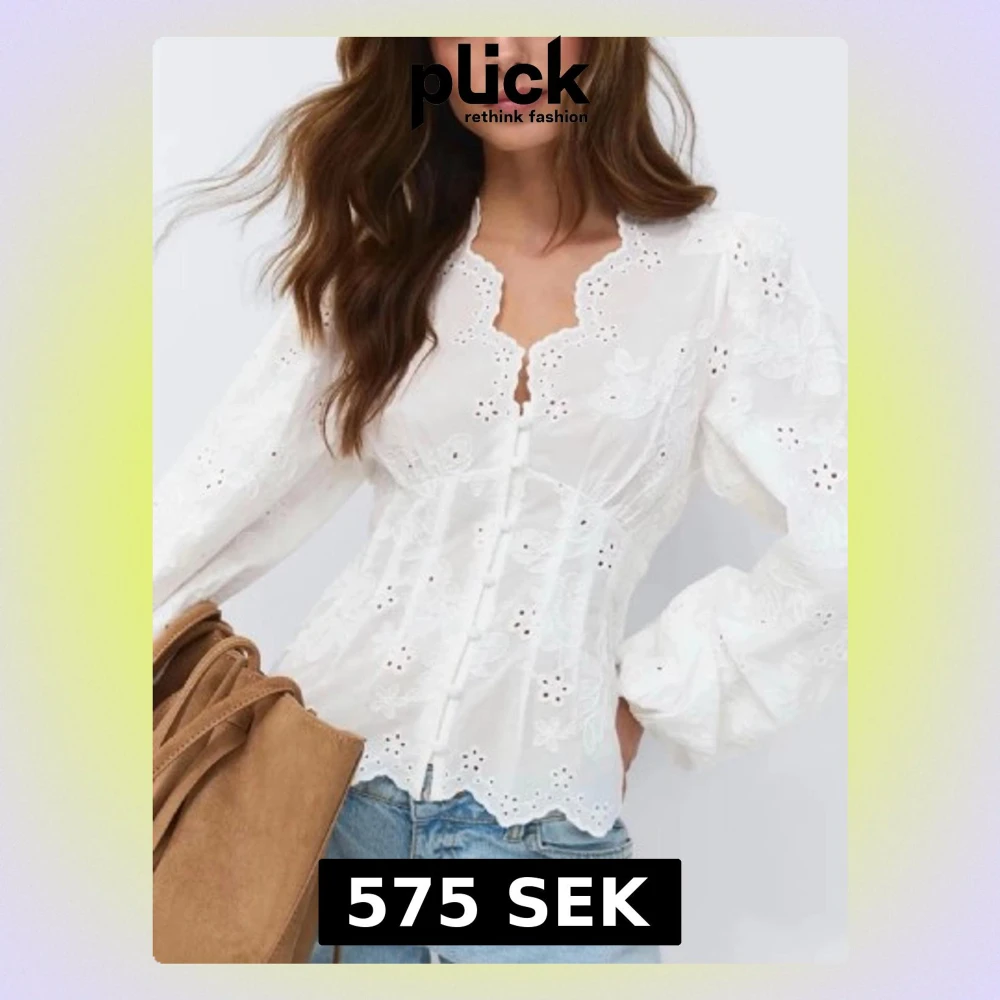 Så söt blus från ginatricot med broderade blommor och spetskantad v-ringning. Blusen är slutsåld och i storlek xs. Heter balloon sleeve blouse. Helt ny med prislappen kvar. Hör av er vid frågor 💞