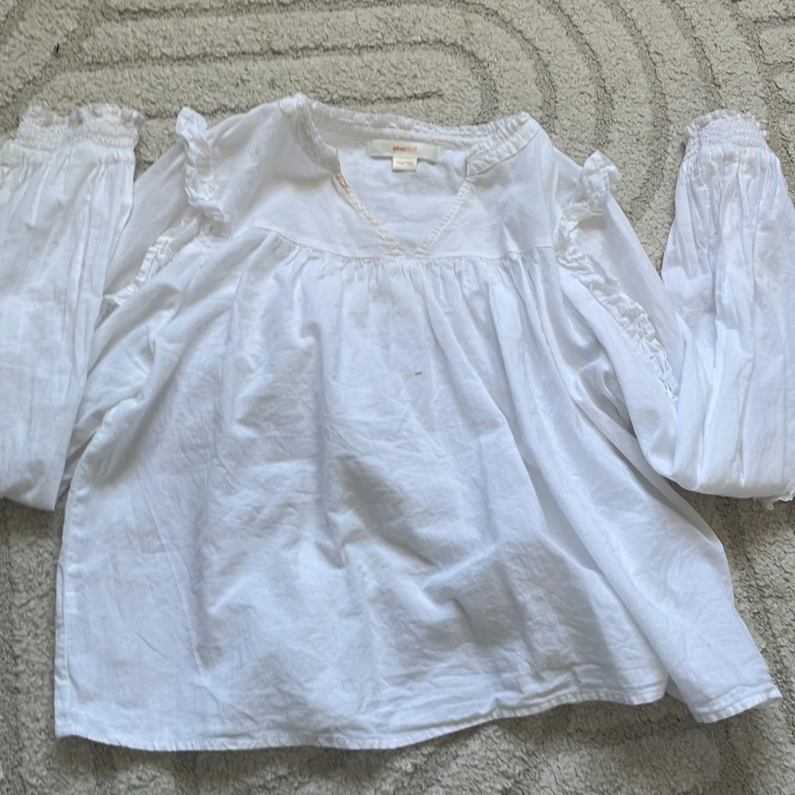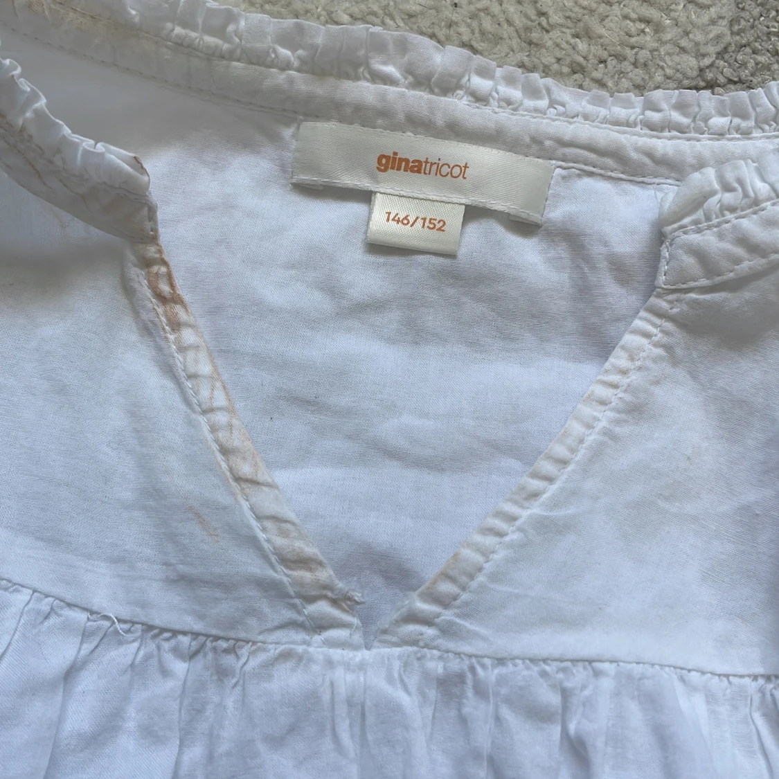 En vit blus från Gina. Den har en smink rand vid kragen men går säkert bort i tvätten.