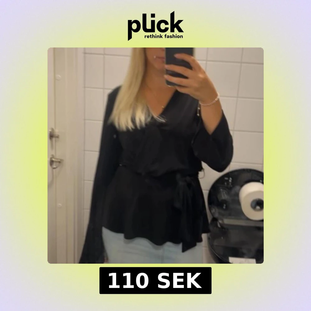 Snygg svart omlottopp från H&M med knytband i midjan. Passar S och M