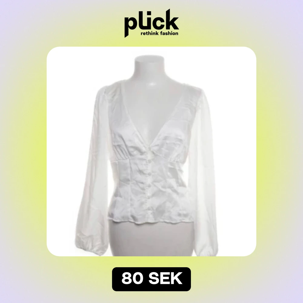 Vit, vringad blus med knappar och knyt på ryggen. Köpt från H&M, bra skick, storlek M men borde passa S också. Jättefin till ex: kjol m.m. Skriv gärna vid intresse eller eventuella frågor😊