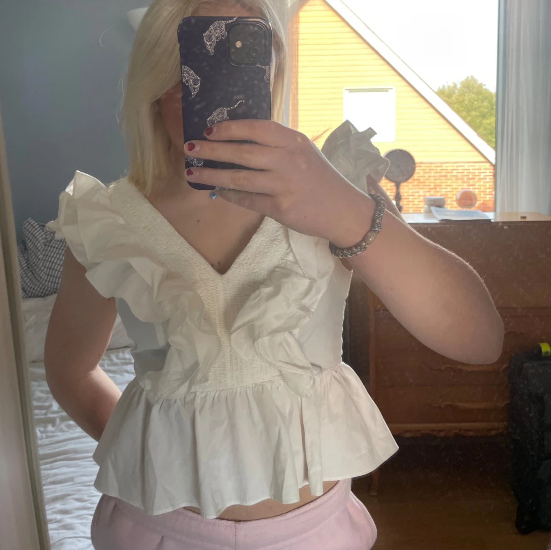 Säljer denna vita blusen ifrån H&M! OBS första bilden är lånad, andra bilden är min💞💞