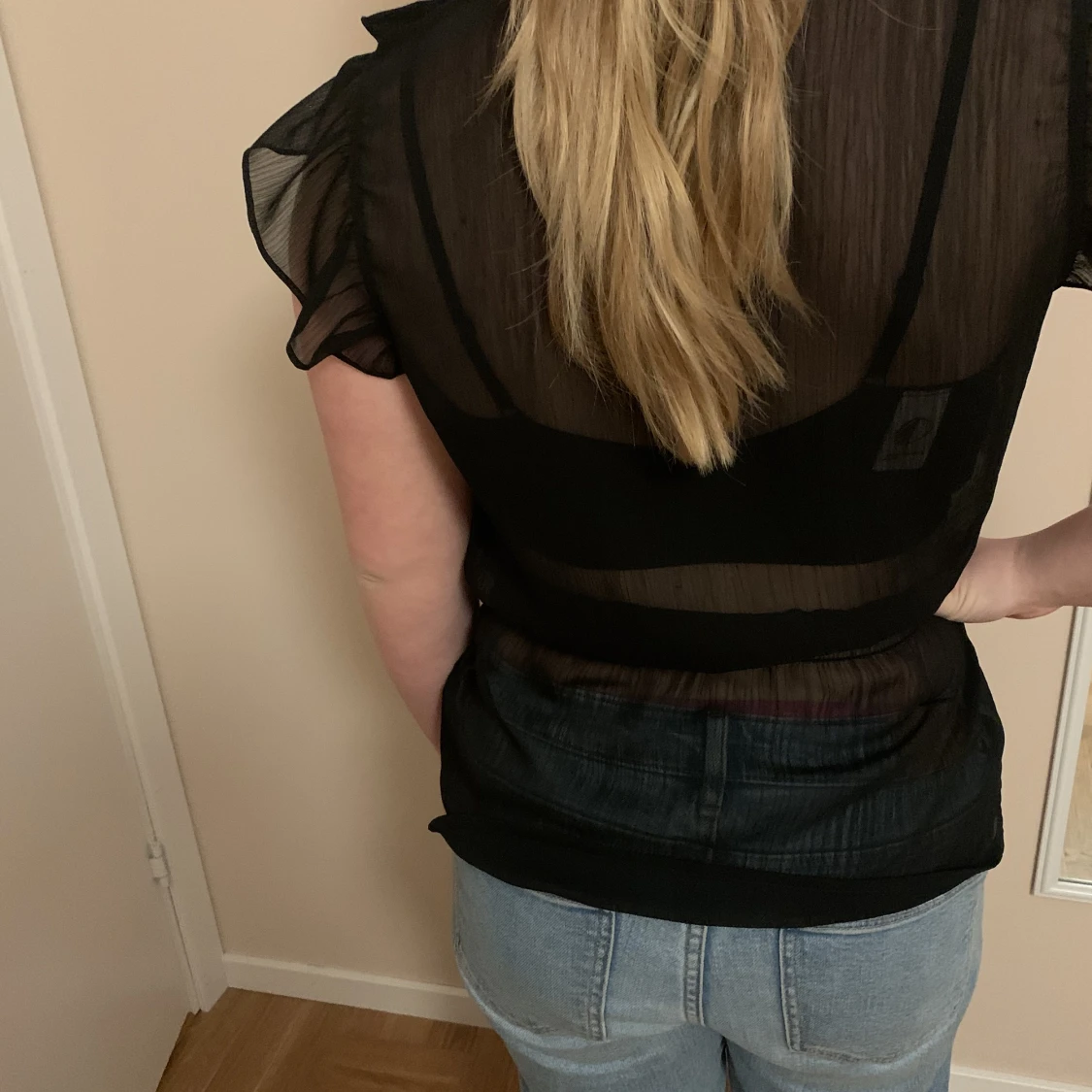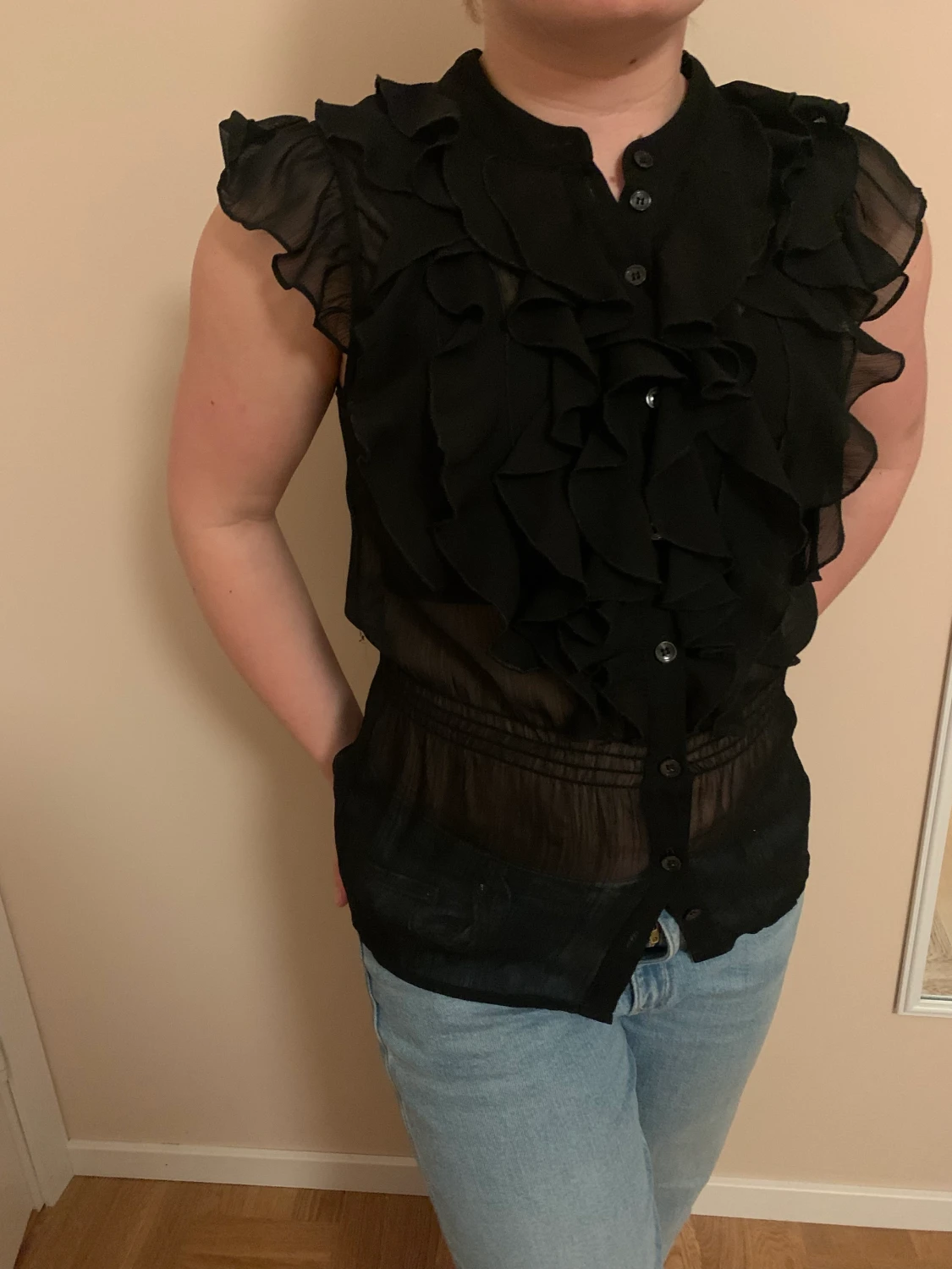 En fin svart fin volangblus från HM, stl 40.