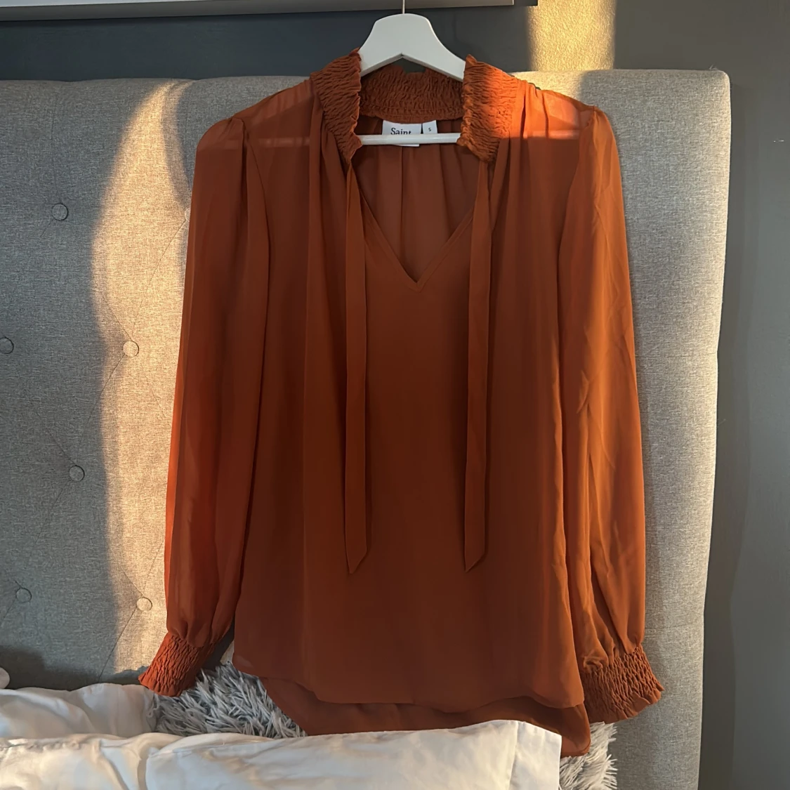 En väldigt fin blus från satin och är i bra skick utan några missfärgningar 🧡