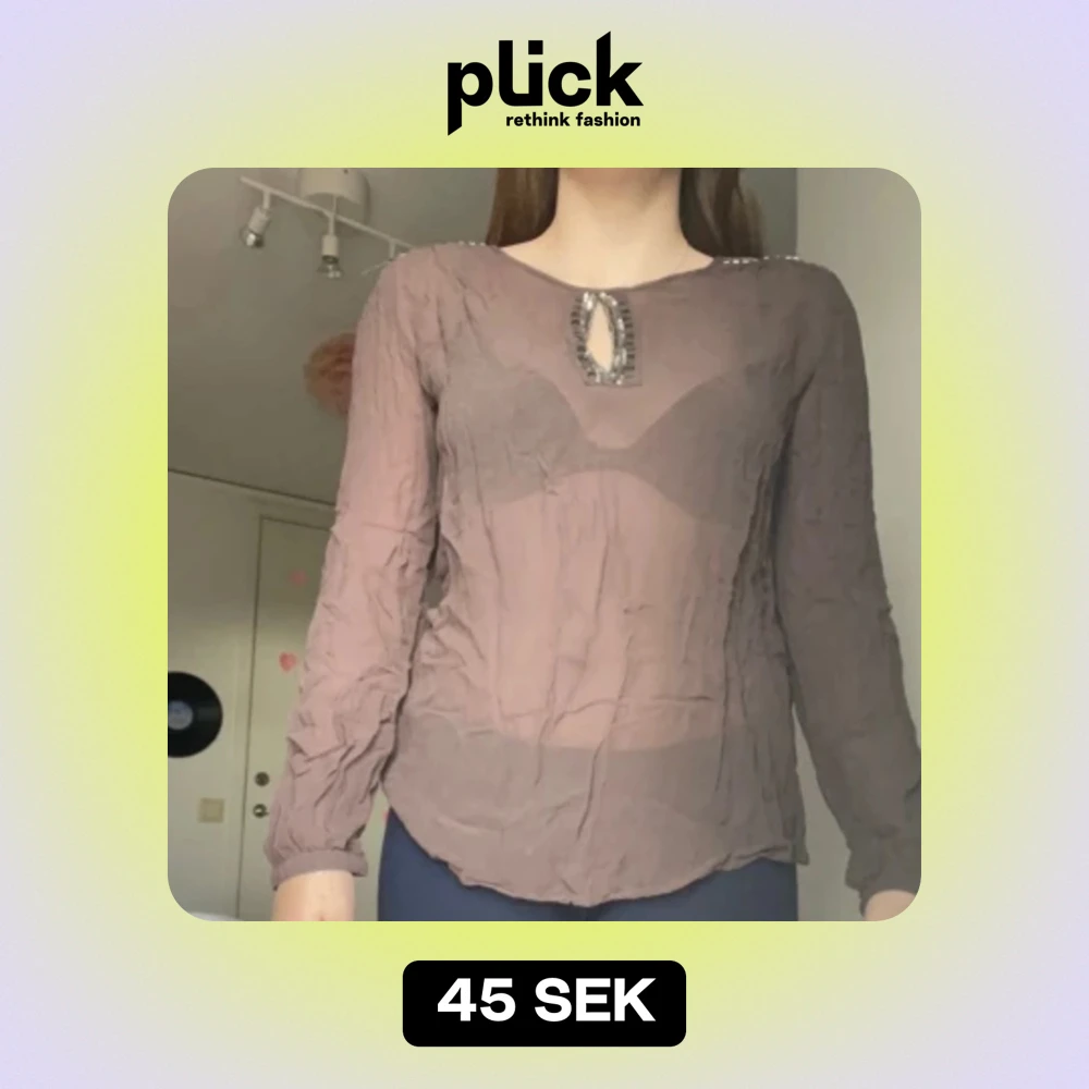 En mörkbrun blus med detaljer vid både bröst och axlar storlek L men passar även M (väldigt tunn)