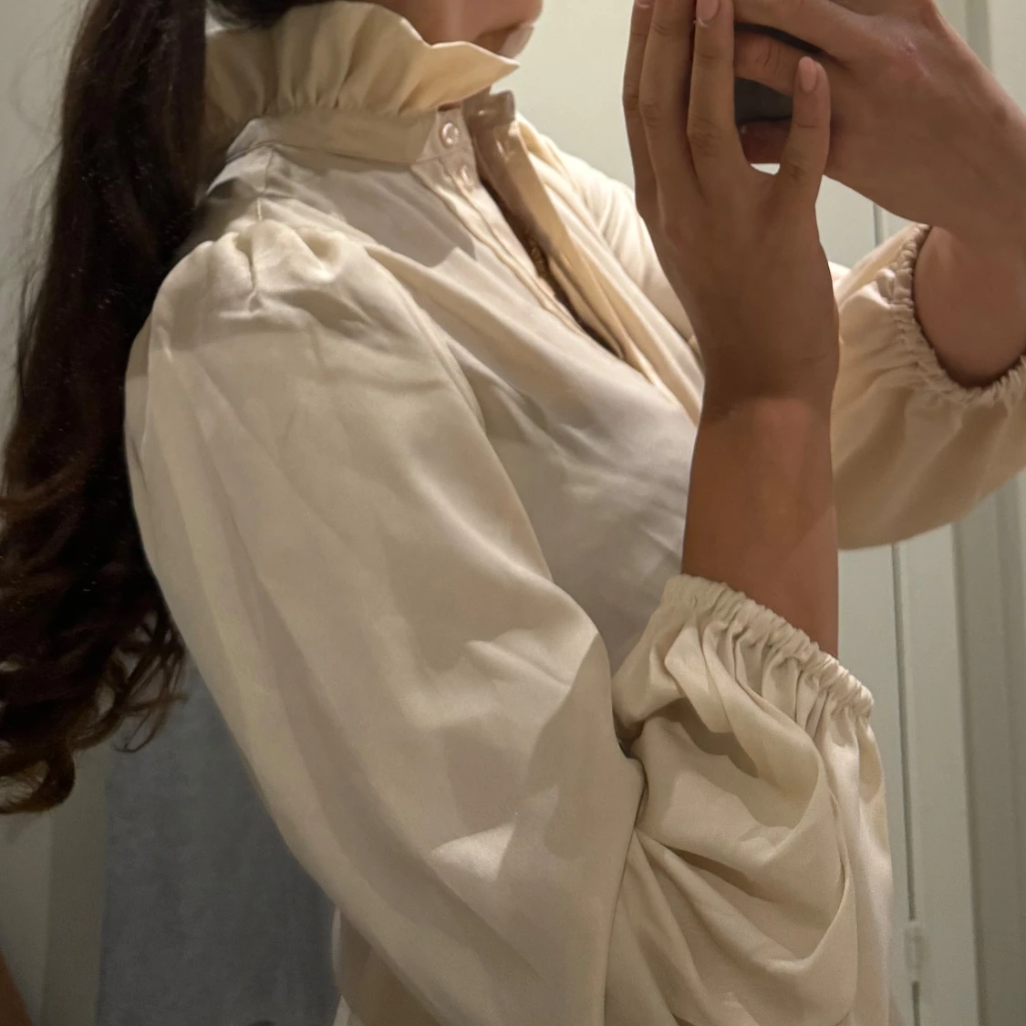 Jätte söt blus med volanger längs kragen. Endast testad!