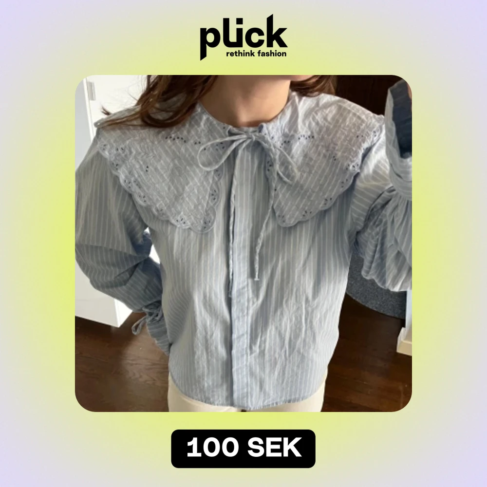 En söt randig blus med rosett och Peter pan krage