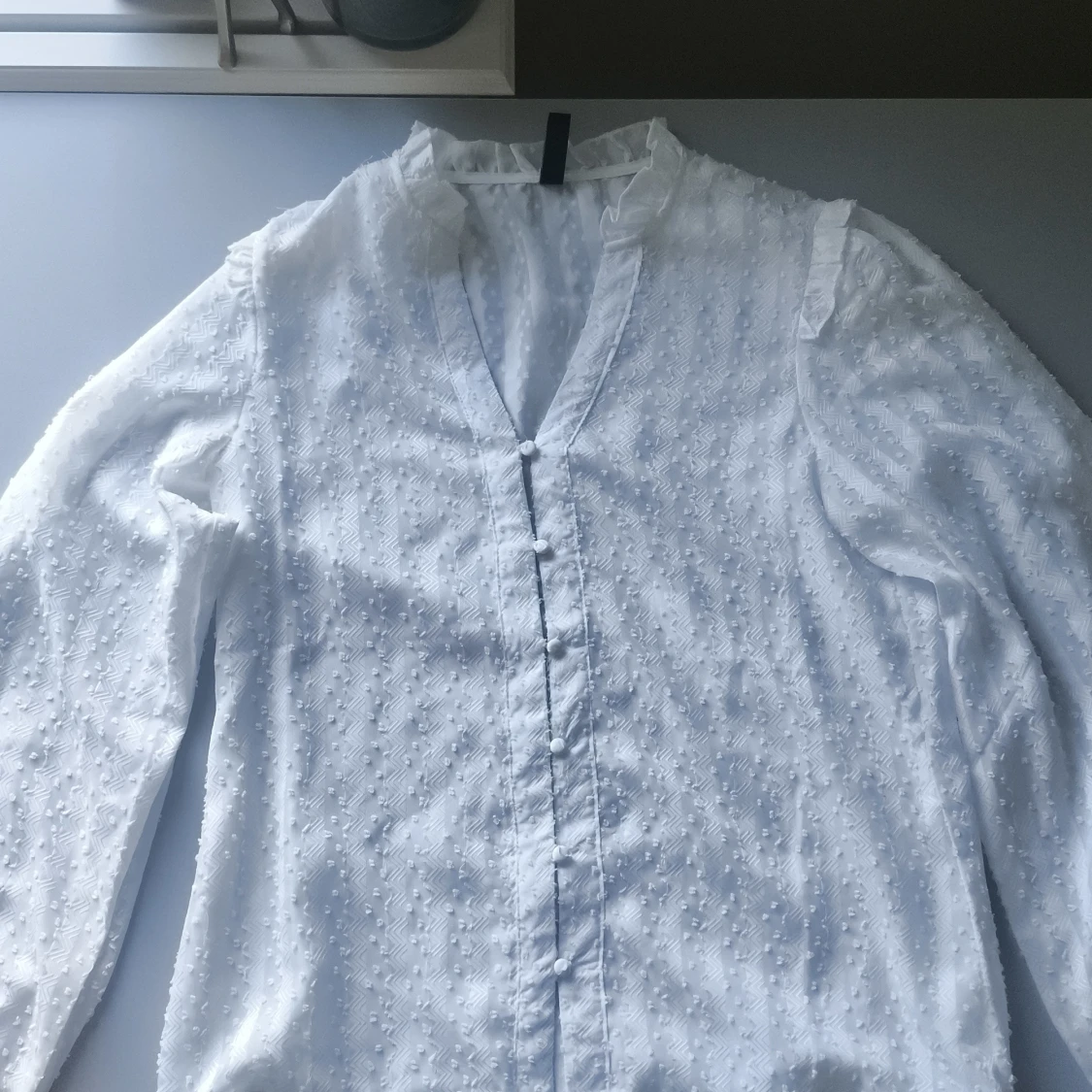 Vit blus från Amisu i storlek S, nästan aldrig använd jättefin vit mönster blus