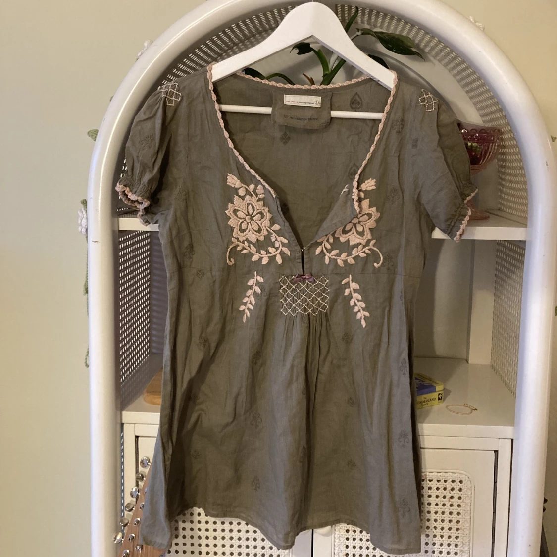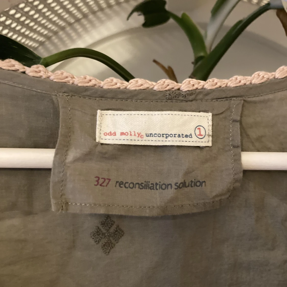 Gullig Odd Molly blus is militärgrön med rosa broderi. Storlek 2 💖